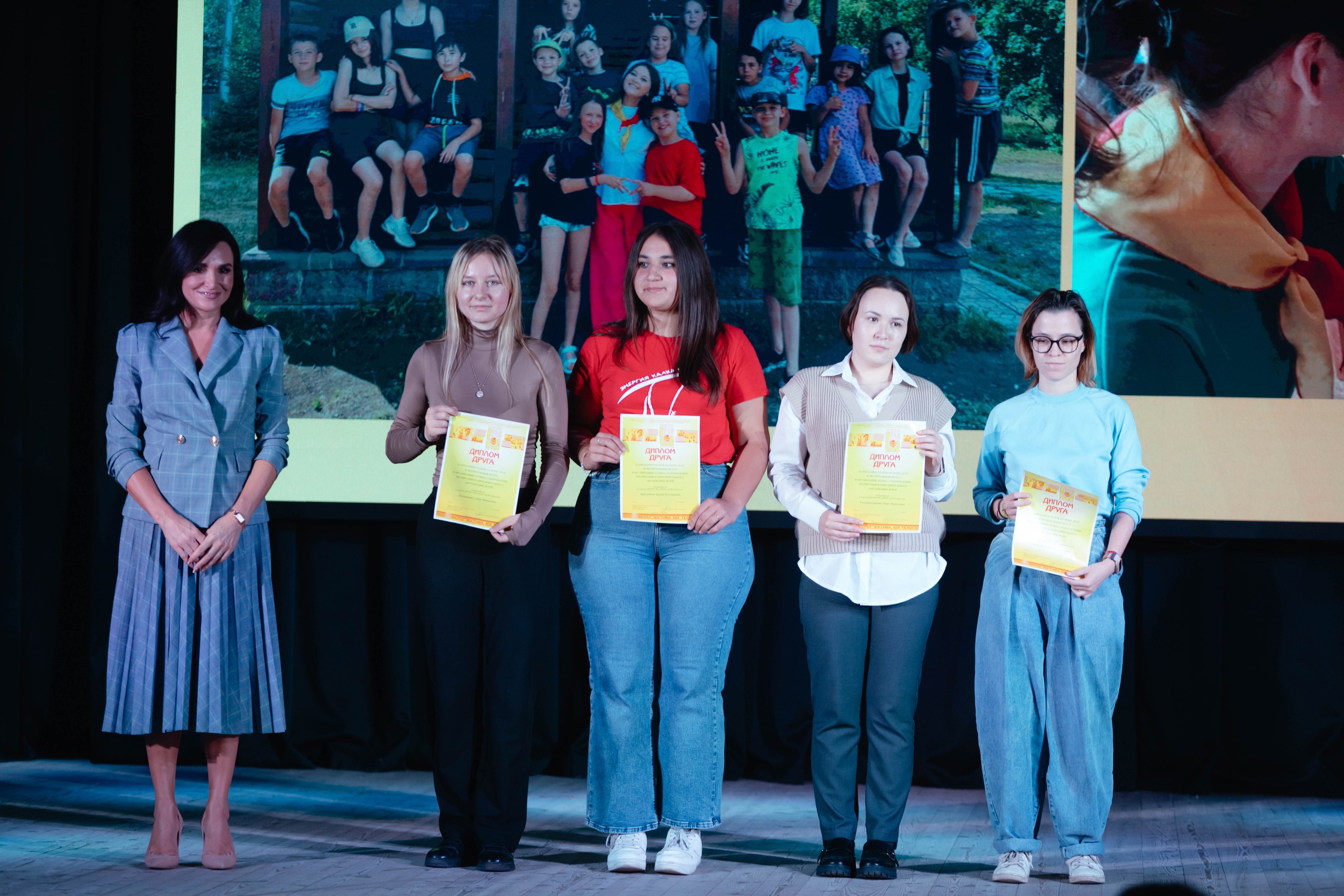 За труд и внимание, проявленное к детям, вожатых 2023 года поблагодарили руководители летних лагерей, где работали ребята, и представители туристской фирмы «Крекс», много лет сотрудничающей с Центром подготовки вожатых. На сцене им вручали «Диплом друга», подтверждающий значительный вклад в организацию отдыха, оздоровления, воспитания и дополнительного образования детей.