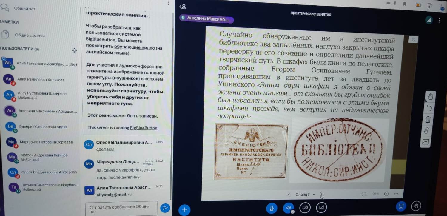 Доценты кафедры педагогики Арасланова А.Т. и Султанова Л.Ф. провели воркшоп "Научный путь любимого педагога"