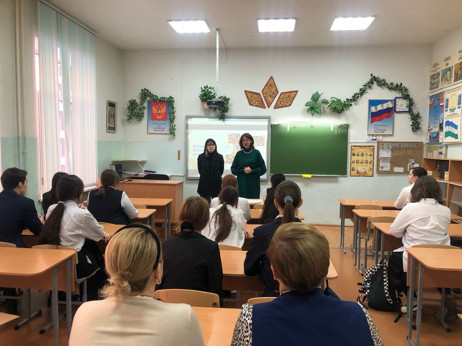 26 февраля доцент кафедры педагогики Н.К. Нуриханова и студентка 3 курса ФП А. Климова  провели  для обучающихся 9 А класса внеурочное занятие  «Разговор о важном»  на тему «Всероссийский фестиваль молодёжи» на базе МАОУ  «Центр образования №10». В рамках данной темы  обучающиеся   расширили  свои  знания о международном движении;  познакомились с  историей Всемирных фестивалей молодёжи; выявили значение предстоящего Всемирного фестиваля молодёжи как возможности установления диалога между молодыми людьми разных стран для созидания мирного будущего, взаимного обогащения культурами и традициями разных народов, воспитание гражданственности и патриотизма. Большое внимание уделялось формированию  гордости за страну, дружбы, взаимоуважения, коллективизма.