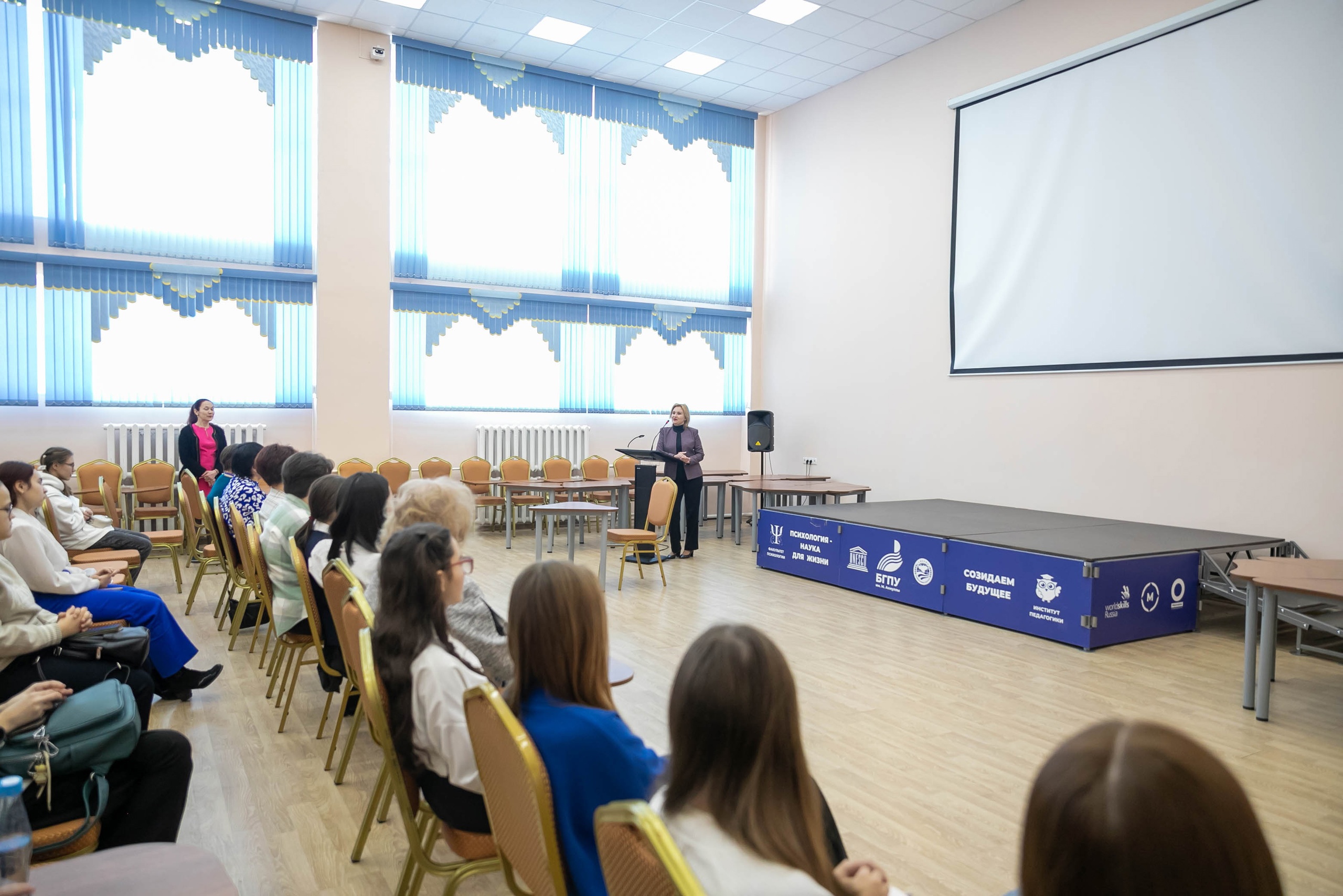На открытии олимпиады ее участников приветствовали директор Института педагогики Ирина Боронилова и декан факультета психологии Лилия Халикова, которые рассказали школьникам о направлениях подготовки учебных подразделений и студенческой жизни.