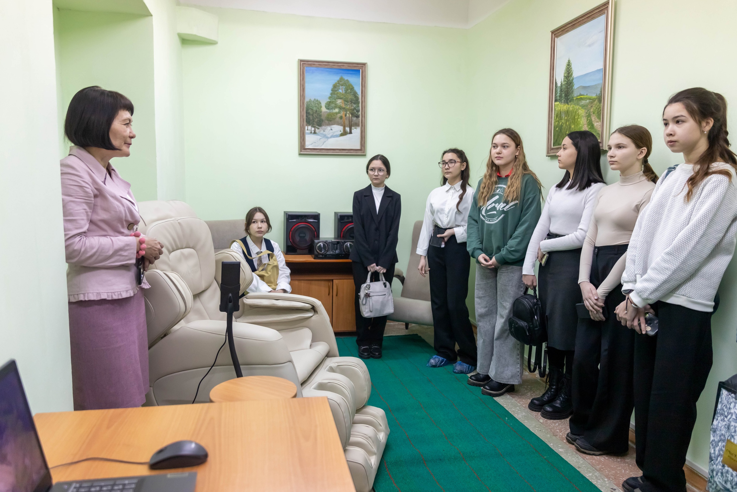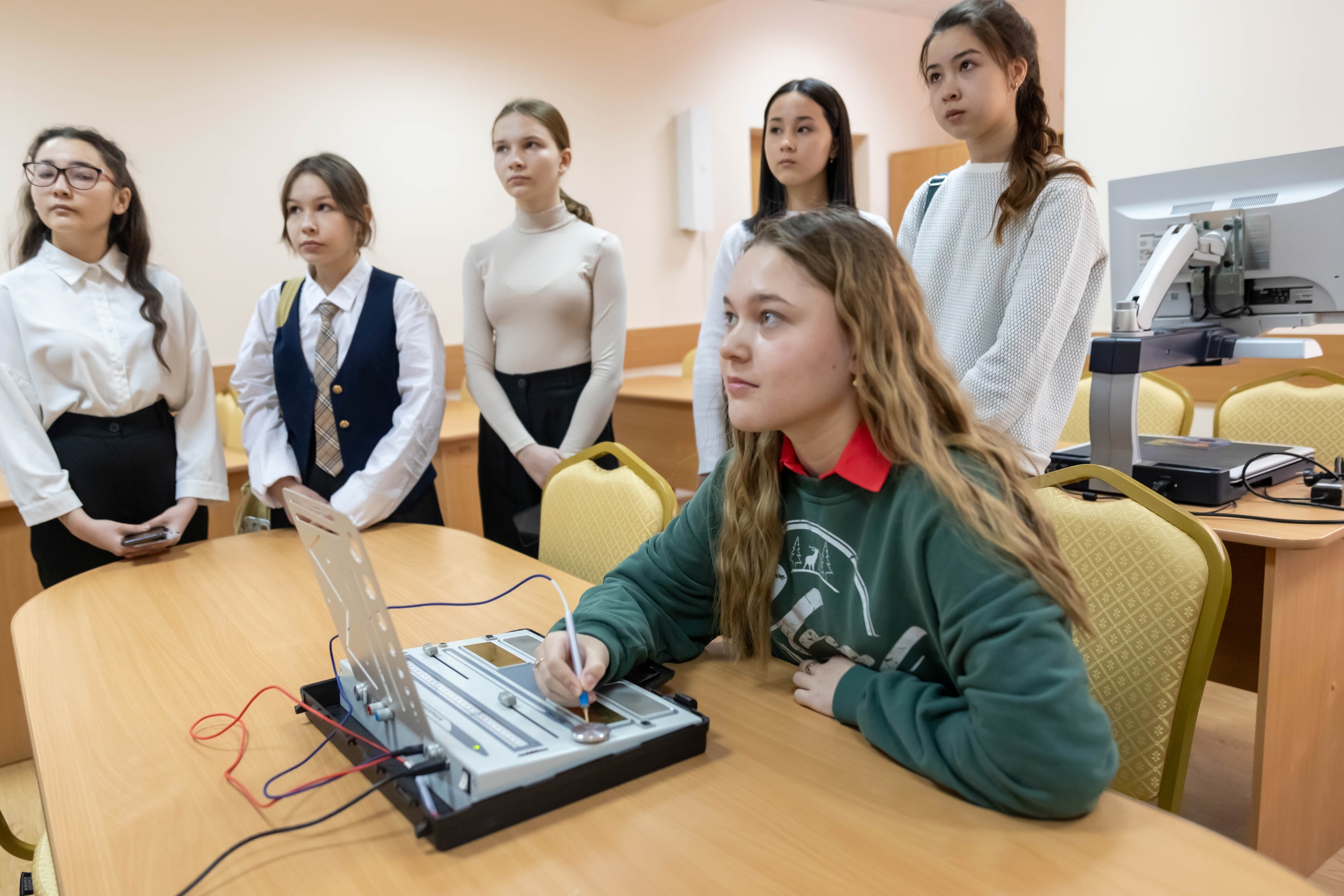 После открытия для школьников была проведена экскурсия. Ребята решали викторину, познакомились с возможностями цифрового микроскопа, сыграли в лото, узнали про азбуку Брайля, посетили учебные аудитории, а также познакомились с программами, которые реализуются в ИП и ФП. Школьники прошли квиз, связанный со здоровым образом жизни, и проверили свои знания в этой области.