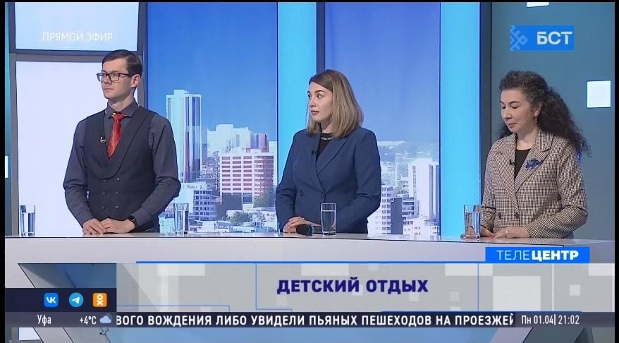 1 апреля старший преподаватель кафедры педагогики Акмуллинского университета, руководитель Центра подготовки вожатых «Перспектива»  имени Е. Поспеловой Алексей Дударенко принял участие в информационно-аналитической программе «Телецентр» на телеканале БСТ.