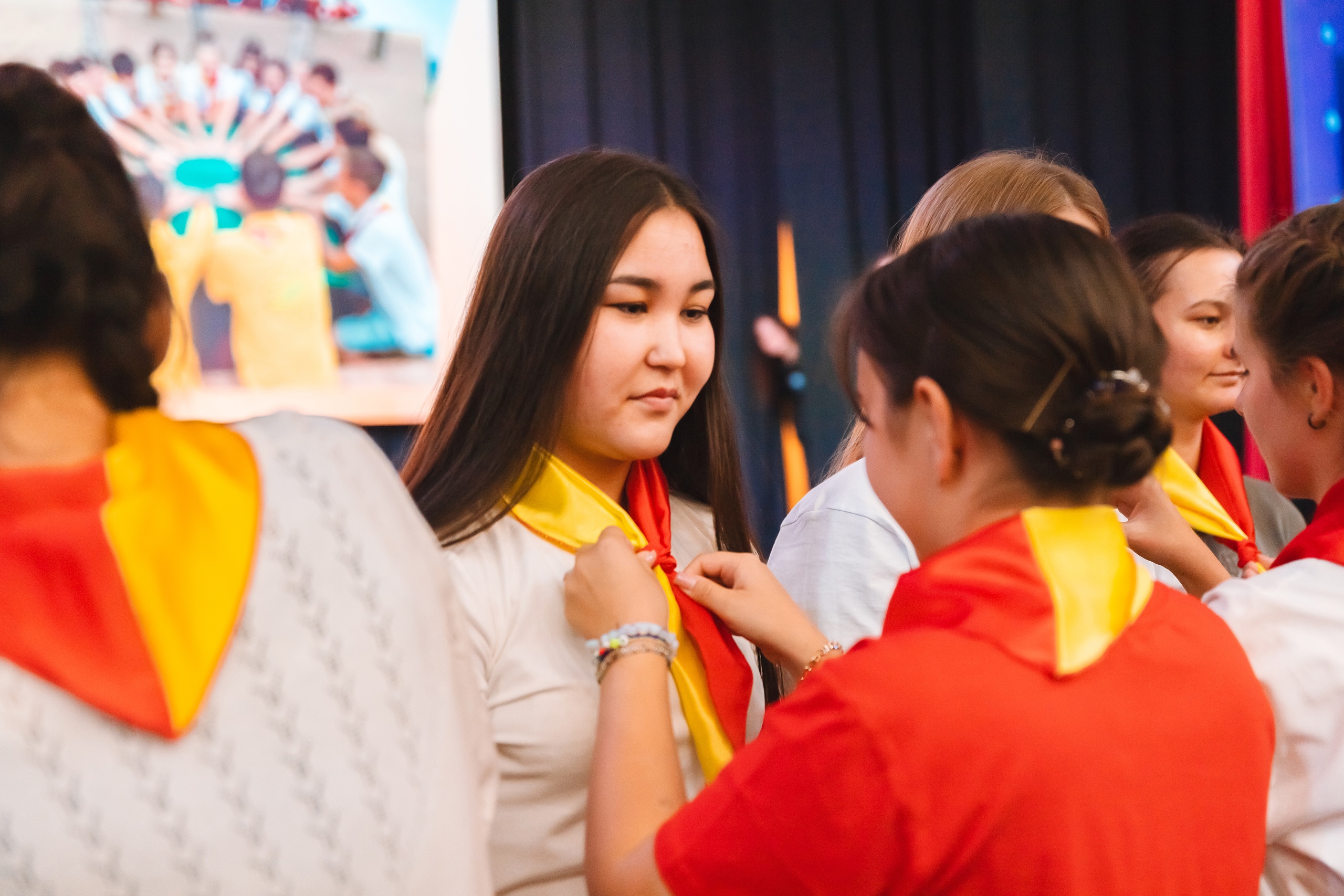 На фестивале командиры отрядов передали эстафету следующему потоку студентов – 3 курсу. Они повязали им фирменные красно-желтые галстуки, которые являются визитной карточкой выпускника Центра вожатых «Перспектива».