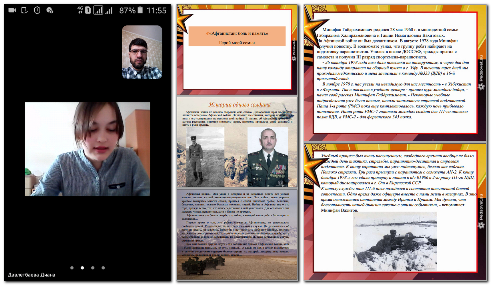 25 апреля кафедра иностранных языков провела онлайн мероприятие «Защитники Отечества: герои наших семей» (“Defenders of the Fatherland: heroes of our families”) на родных и иностранных языках. Студенты неязыковых факультетов и институтов Акмуллинского университета подготовили презентации и выступили с докладами о героях своих семей, в разные времена защищавших мир и покой нашей Родины. Всему этому, конечно же, предшествовала кропотливая работа: дни и даже недели изучения архивных документов, поездки в родовые гнёзда, общение с дальними родственниками.