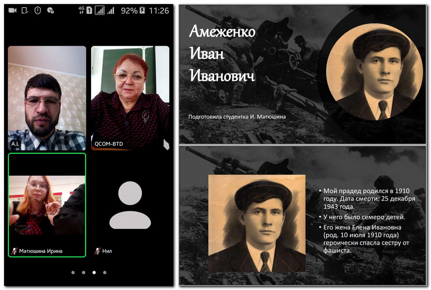 По завершении мероприятия было принято коллективное решение 9 мая встретиться всем онлайн еще раз и дистанционно поздравить ветерана Великой Отечественной войны, командира зенитного отделения, участника обороны Сталинграда Райфу Габдрауфовну Насырову, которой в феврале исполнилось 100 лет.