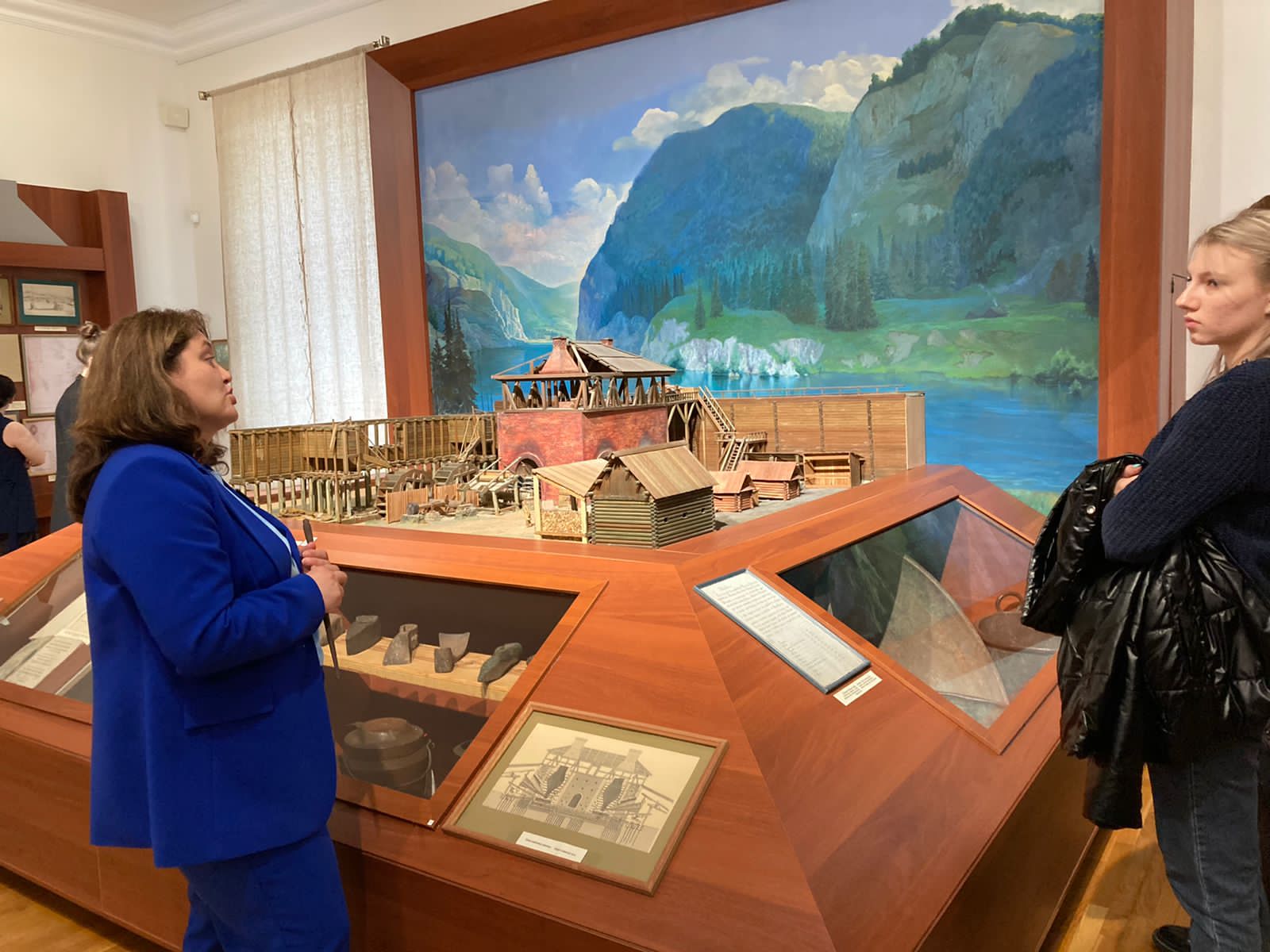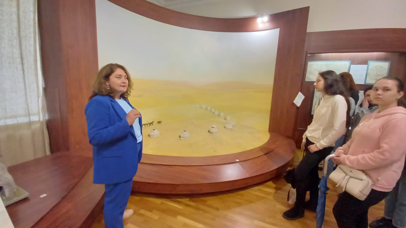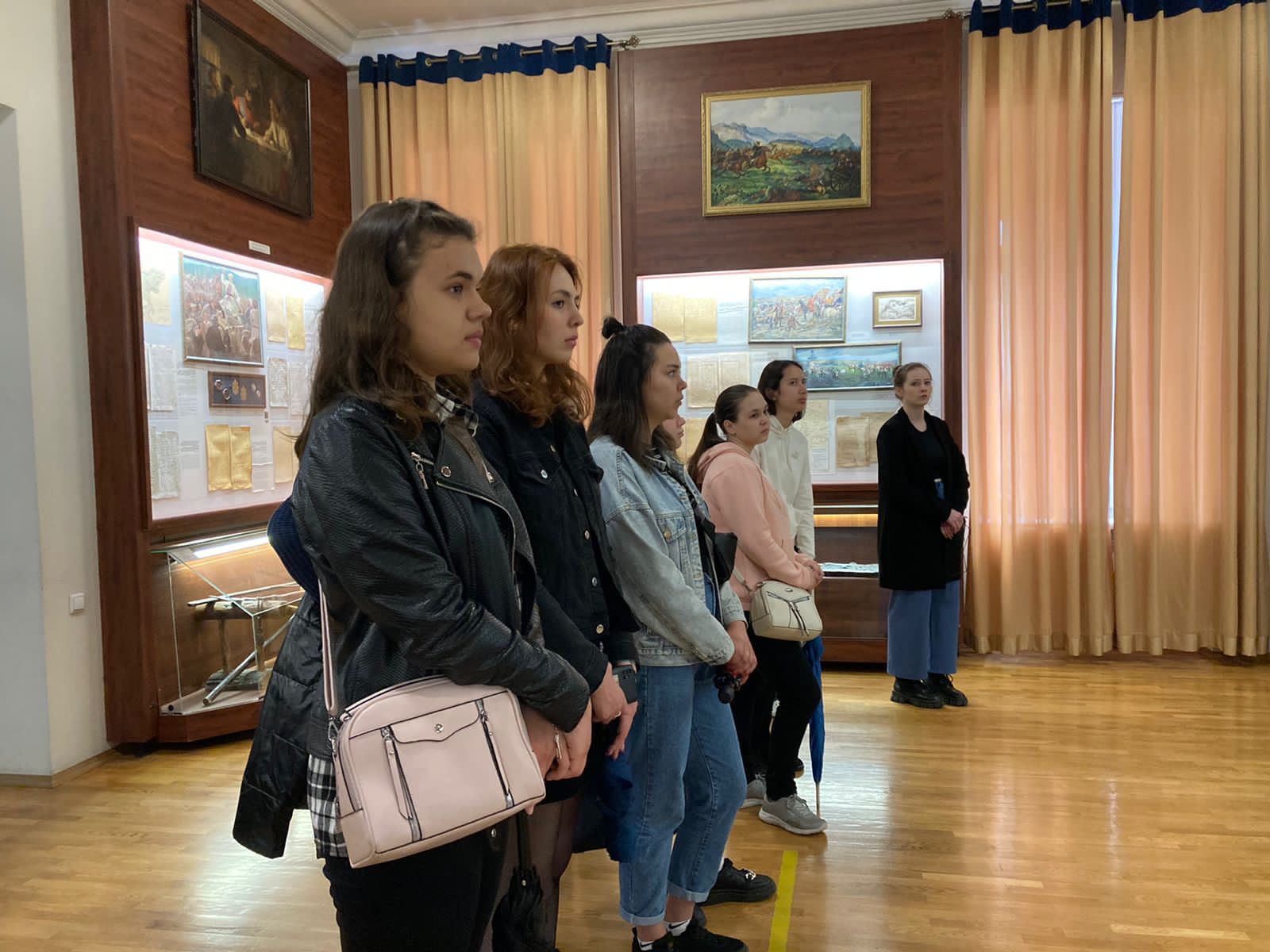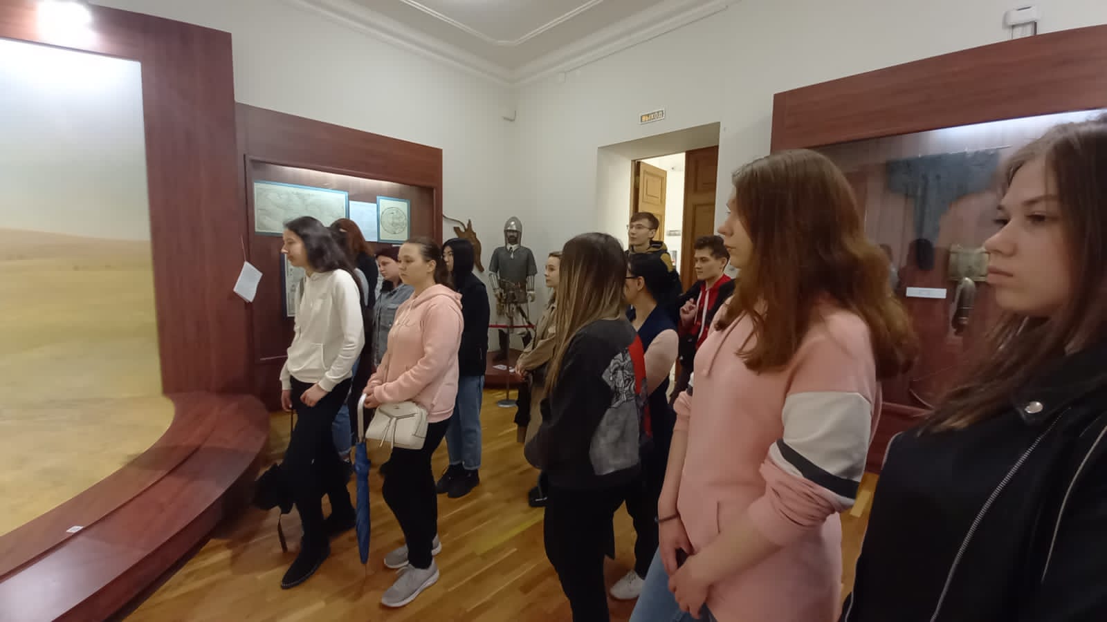 Переходя из одного зала в другой, студенты знакомились с историей края, его археологическими памятниками и артефактами, этнографической спецификой региона, а также с декоративно-прикладным искусством народов Башкирии.