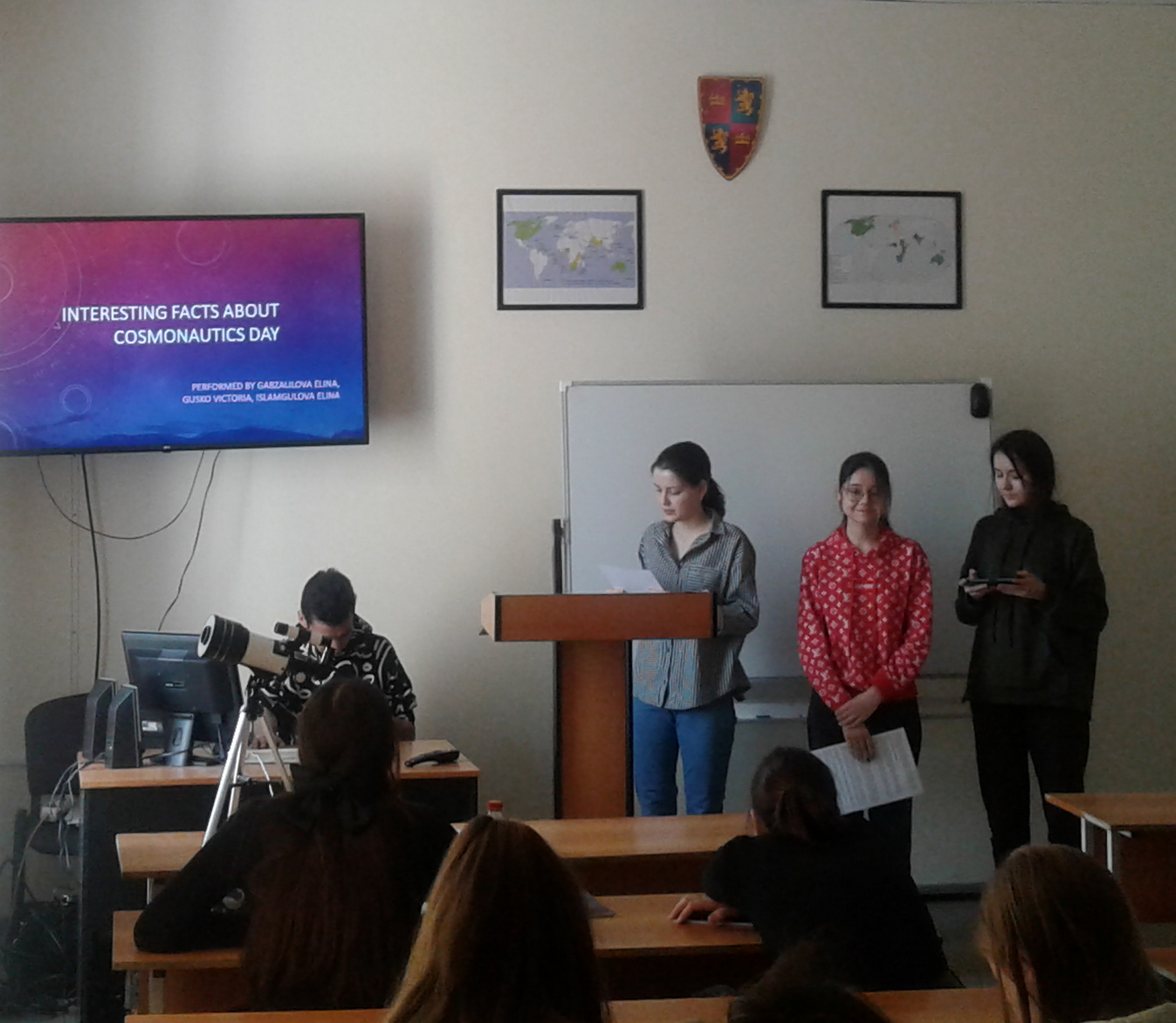 12 апреля в рамках проекта кафедры иностранных языков, связанного с подготовкой к открытию студенческого объединения, под руководством А.И. Шагапова было проведено тематическое мероприятие «Cosmonautics Day: from stargazers of the Ancient World to GLONASS satellites». Были заслушаны следующие доклады на английском языке: «Стоунхендж: человек и звезды в доисторические времена», «Изучение звездного неба в эпоху Древности: календари и мифы», «Средневековые астрологи», «Первые телескопы», «Астрономия в эпоху Возрождения», «История астрономии как науки», «Астрономия и астрология», «Искусственные спутники Земли», «Гагарин – первый человек в космосе», «Гагарин, Ванга и планета Вамфим», «Освоение космоса и научная фантастика», «Известные космонавты Советского Союза и России», «Животные-космонавты», «Международная космическая станция», «Телескоп Хаббл», «Космические проекты Илона Маска», «Уфимский планетарий», «Будущее российской космонавтики».