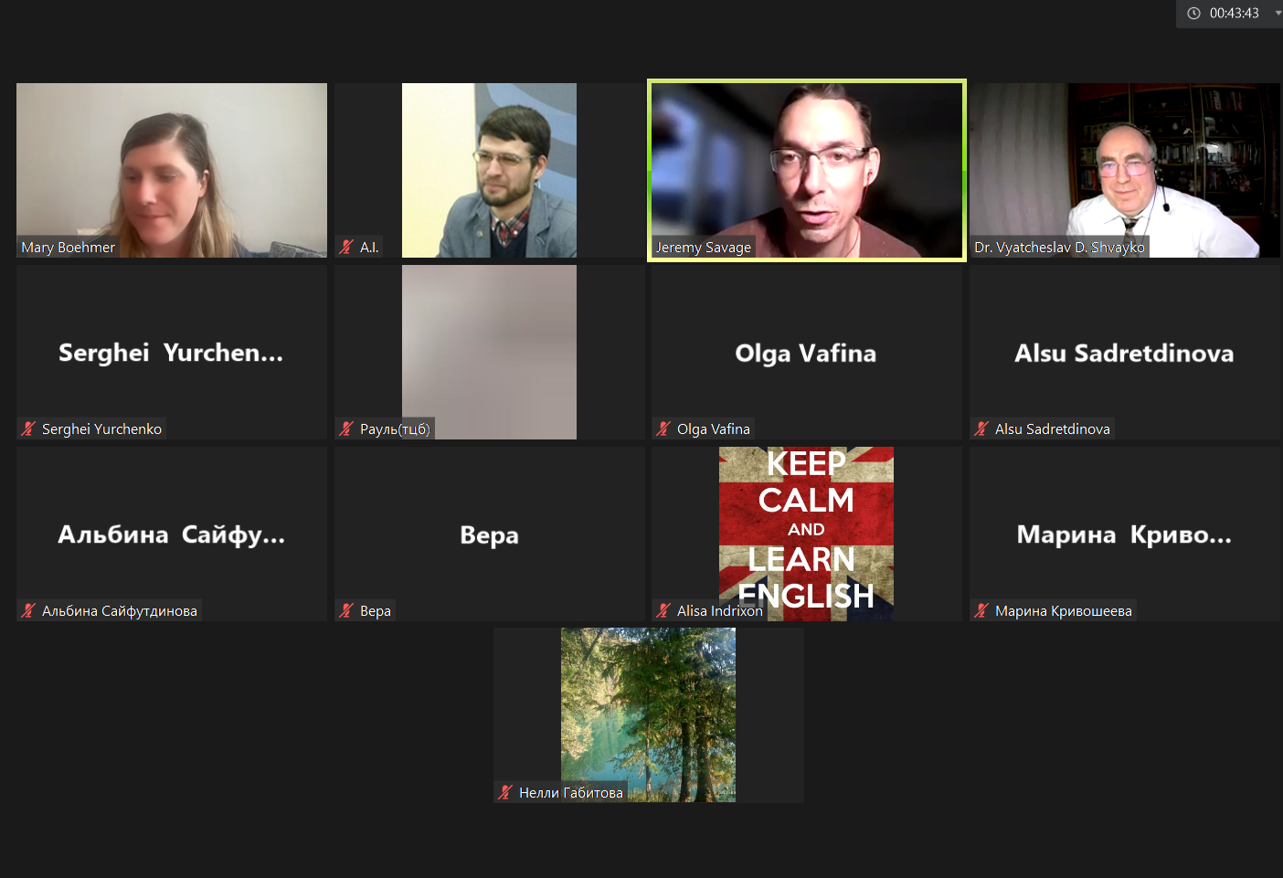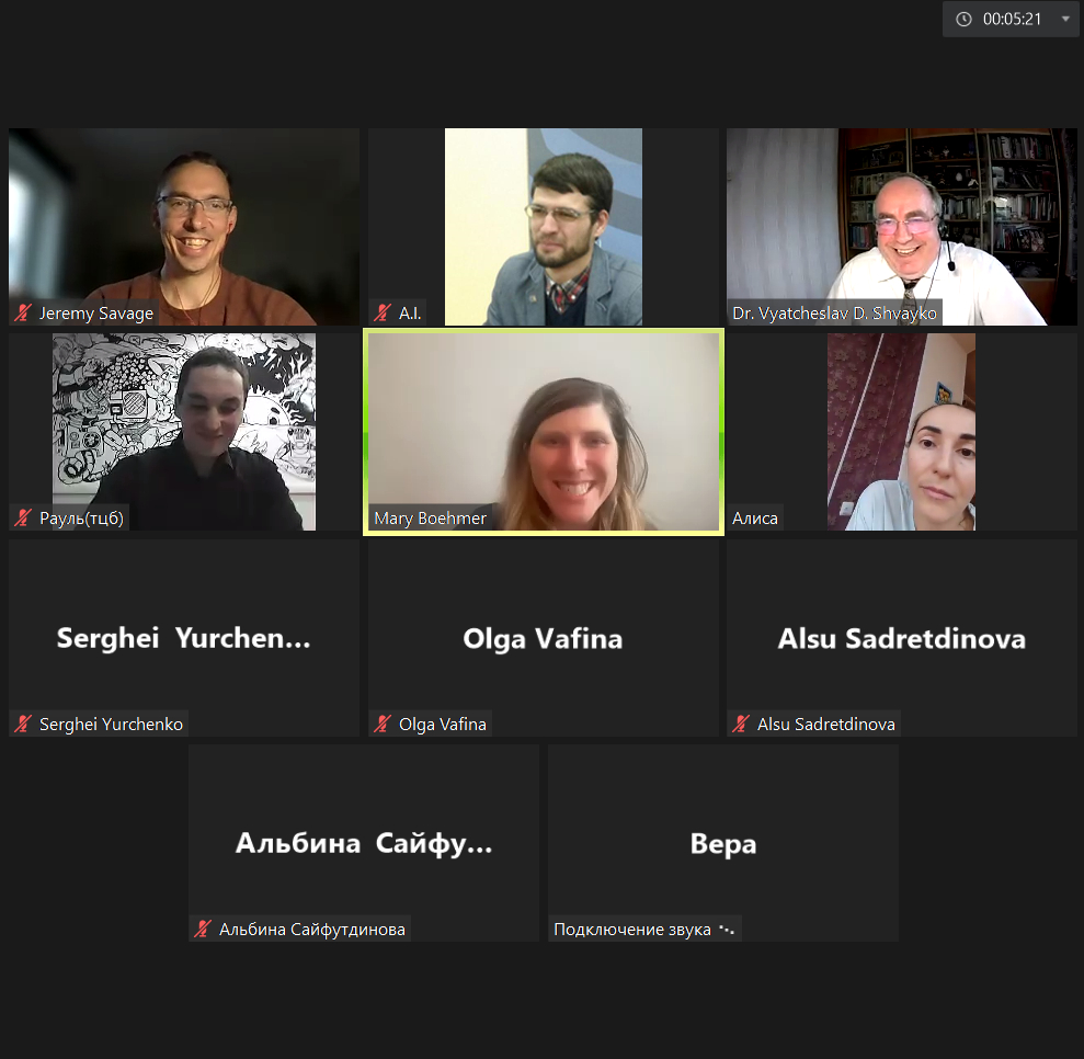 26 апреля 2023 года в рамках очередной онлайн встречи клуба учителей английского языка (организатор: АНО ДО "Интерколледж") к.филол.н., доцент кафедры межкультурной коммуникации и перевода В.Д. Швайко и старший преподаватель кафедры иностранных языков А.И. Шагапов приняли участие в онлайн семинарах носителей языка “Using a Media Literacy Lens to Analyze Diversity in English Texts, Movies, and More” и “Using Improvisation to Motivate Students in the EFL Classroom”. В роли докладчиков выступили преподаватели Интерколледжа Mary Catherine Boehmer и Jeremiah David Savage.