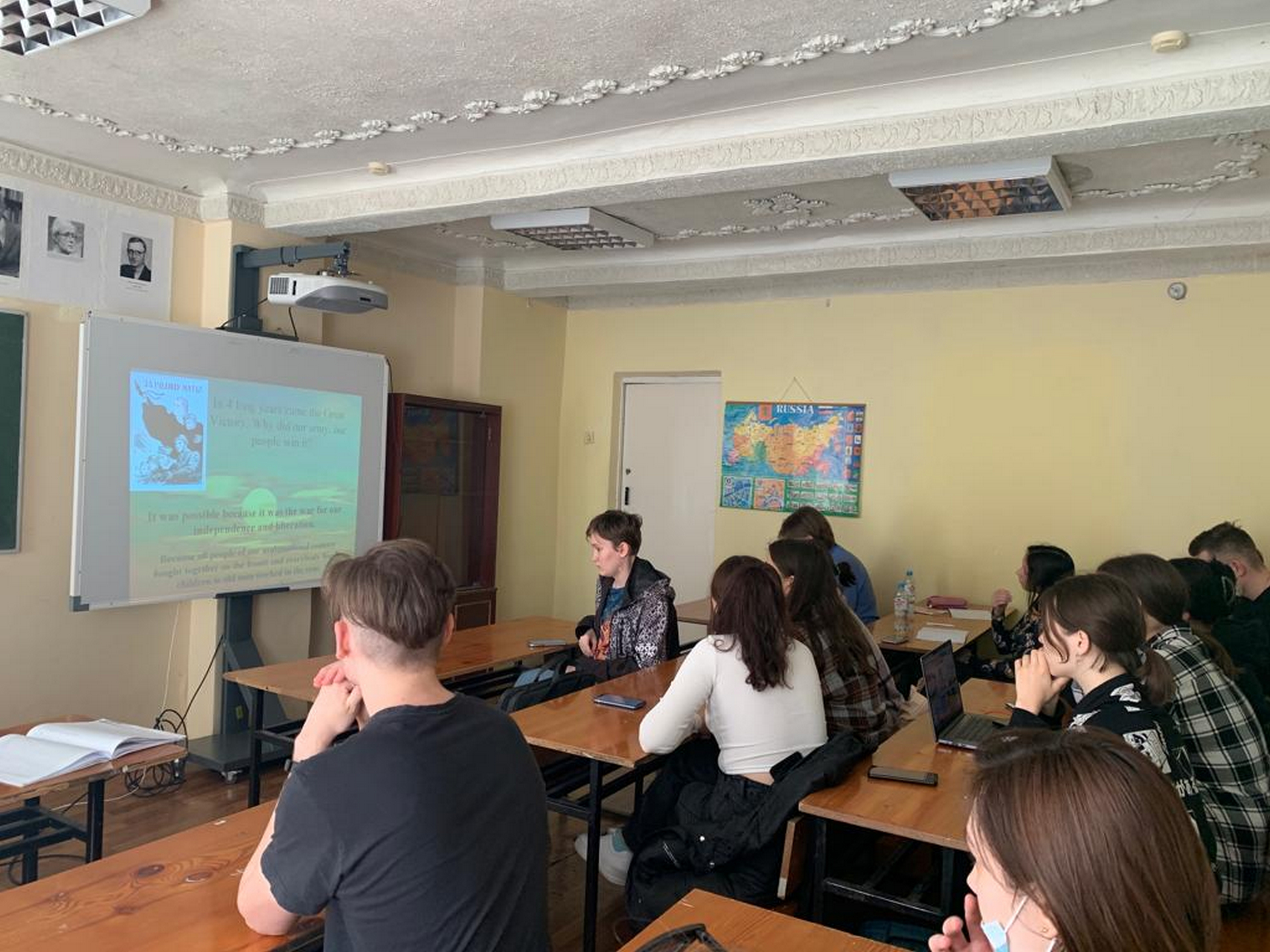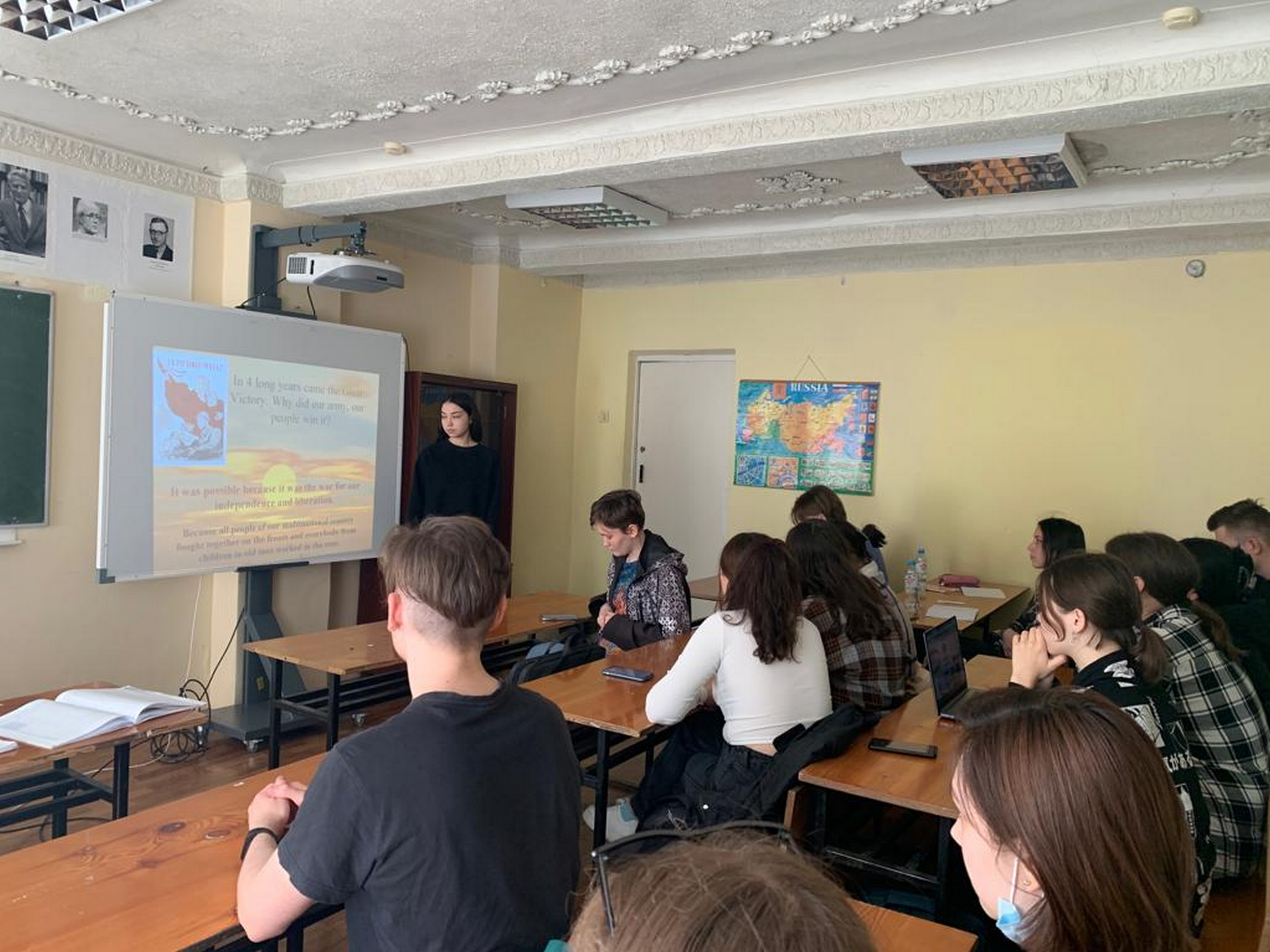 27 апреля с группой ПИНФ_ПРЦ-21-21 старшим преподавателем кафедры иностранных языков А.Р. Цыпиной было проведено патриотическое мероприятие «Великая Победа». А. Давлетшина выступила с докладом, раскрывающим основные даты Великой Отечественной войны, поделилась своими личными впечатлениями после общения с ветеранами.