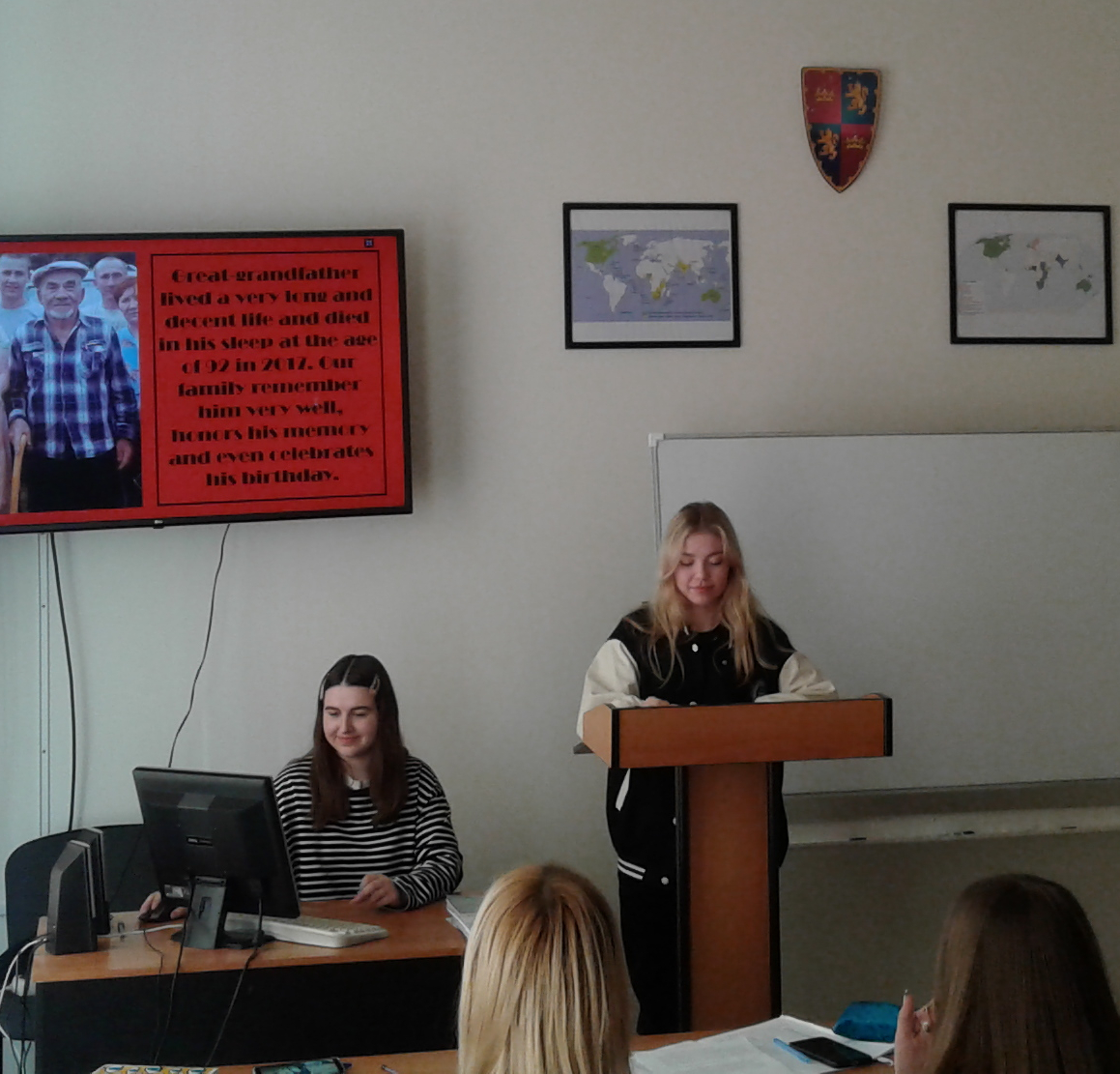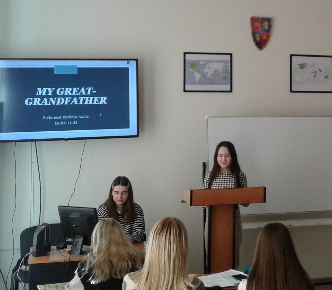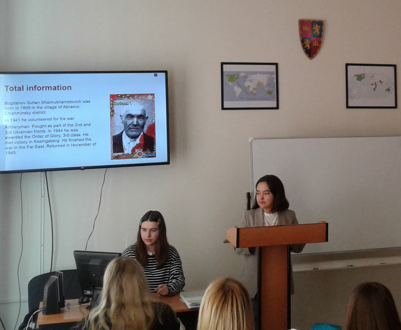 29 апреля А.И. Шагапов провел мероприятия «Защитники Отечества: герои наших семей» и «Дети Войны». Студенты групп БИДРА-11-22 и ПОИС_ОБЩ-11-22 выступили на английском языке с докладами, посвященными героической памяти их родственников.