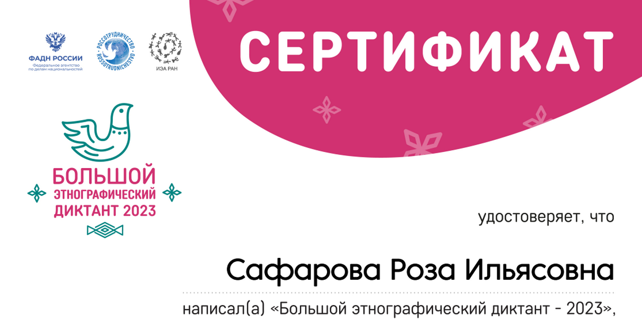 На 11-ой учебной неделе (3-8 ноября) преподаватели кафедры иностранных языков Д.Р. Фатхулова, Р.И. Сафарова, С.М. Хантимиров, А.И. Шагапов приняли участие в VIII Международной просветительской акции «Большой этнографический диктант», которая прошла под лозунгом «Народов много – страна одна!». Задания Диктанта включали в себя две части: 1) 20 вопросов – общефедеральная часть Диктанта, единая для всех участников; 2) 10 вопросов – региональная часть Диктанта, уникальная для каждого субъекта Российской Федерации.