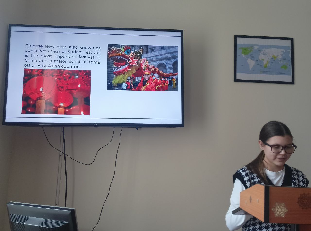 На 24-ой учебной неделе преподавателями кафедры иностранных языков было организовано и проведено мероприятие на английском языке в виде докладов студентов «Лингвофольклористическая специфика китайского Нового года: традиции, обычаи, мифологические персонажи».