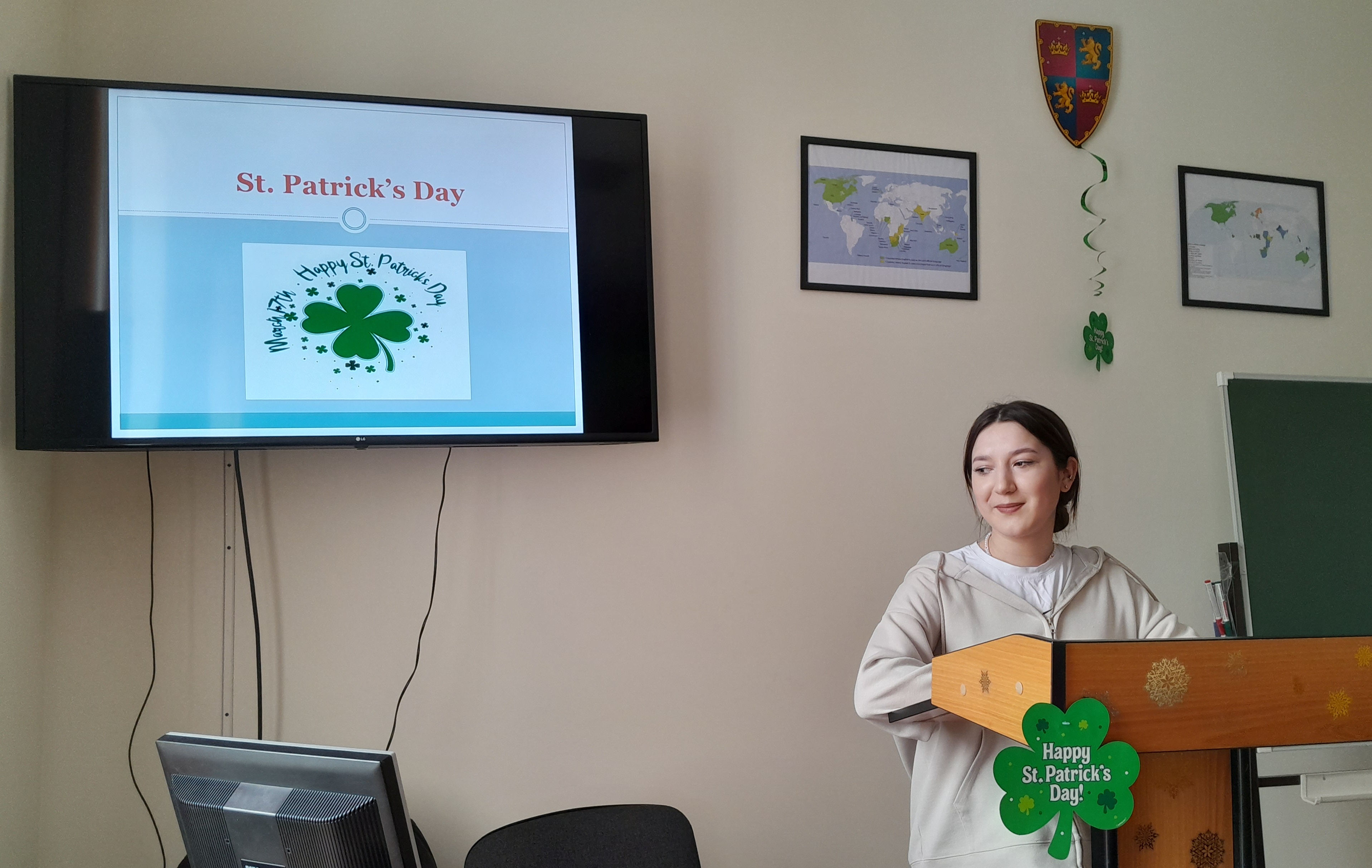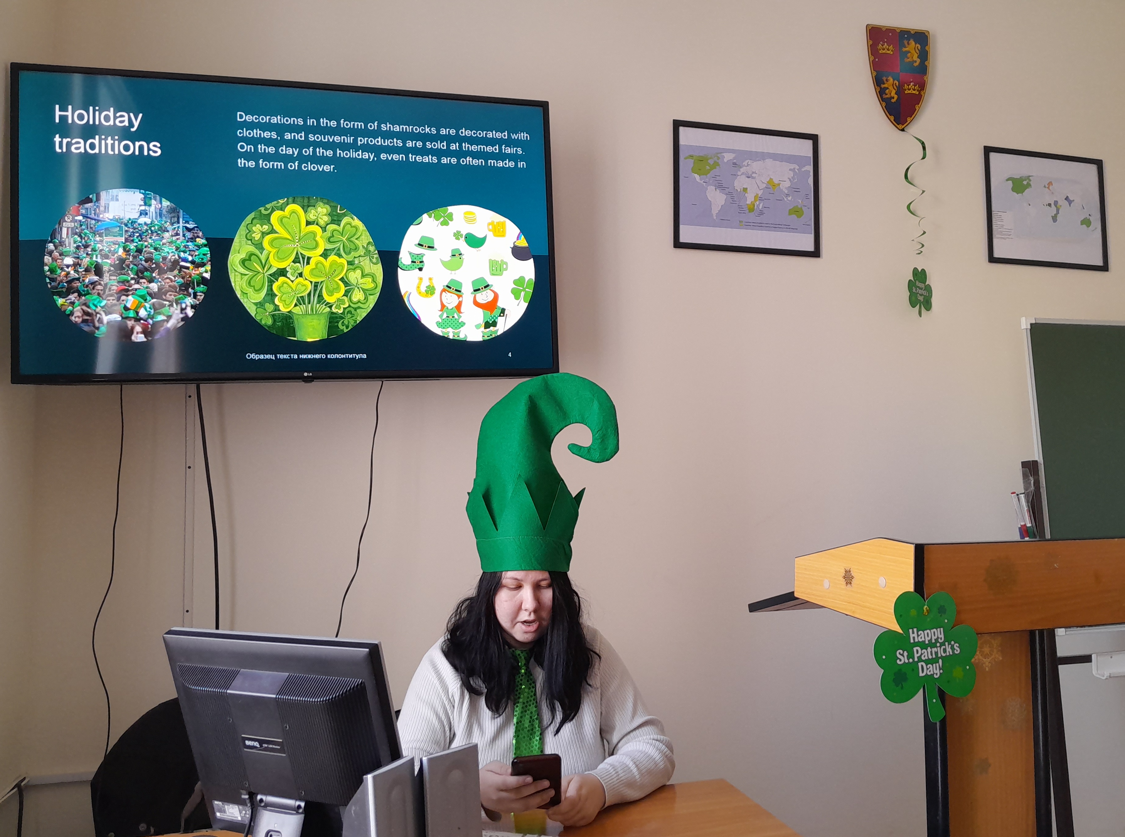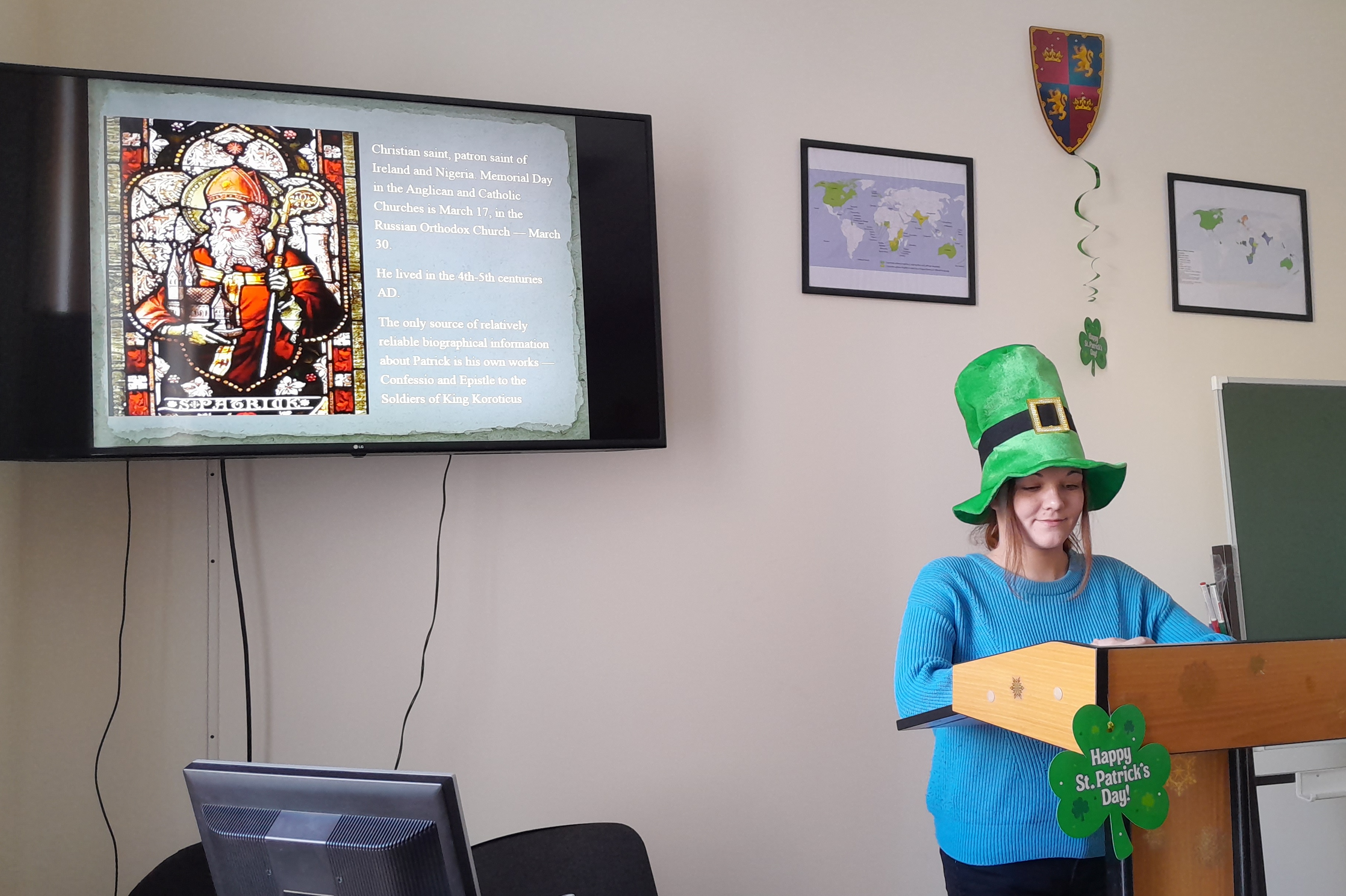 17 марта во всем мире ежегодно отмечается День святого Патрика. К этому дню было приурочено мероприятие кафедры иностранных языков в виде докладов студентов «День Патрика в разных странах: история, обычаи и традиции», которое было проведено на 29-ой учебной неделе.