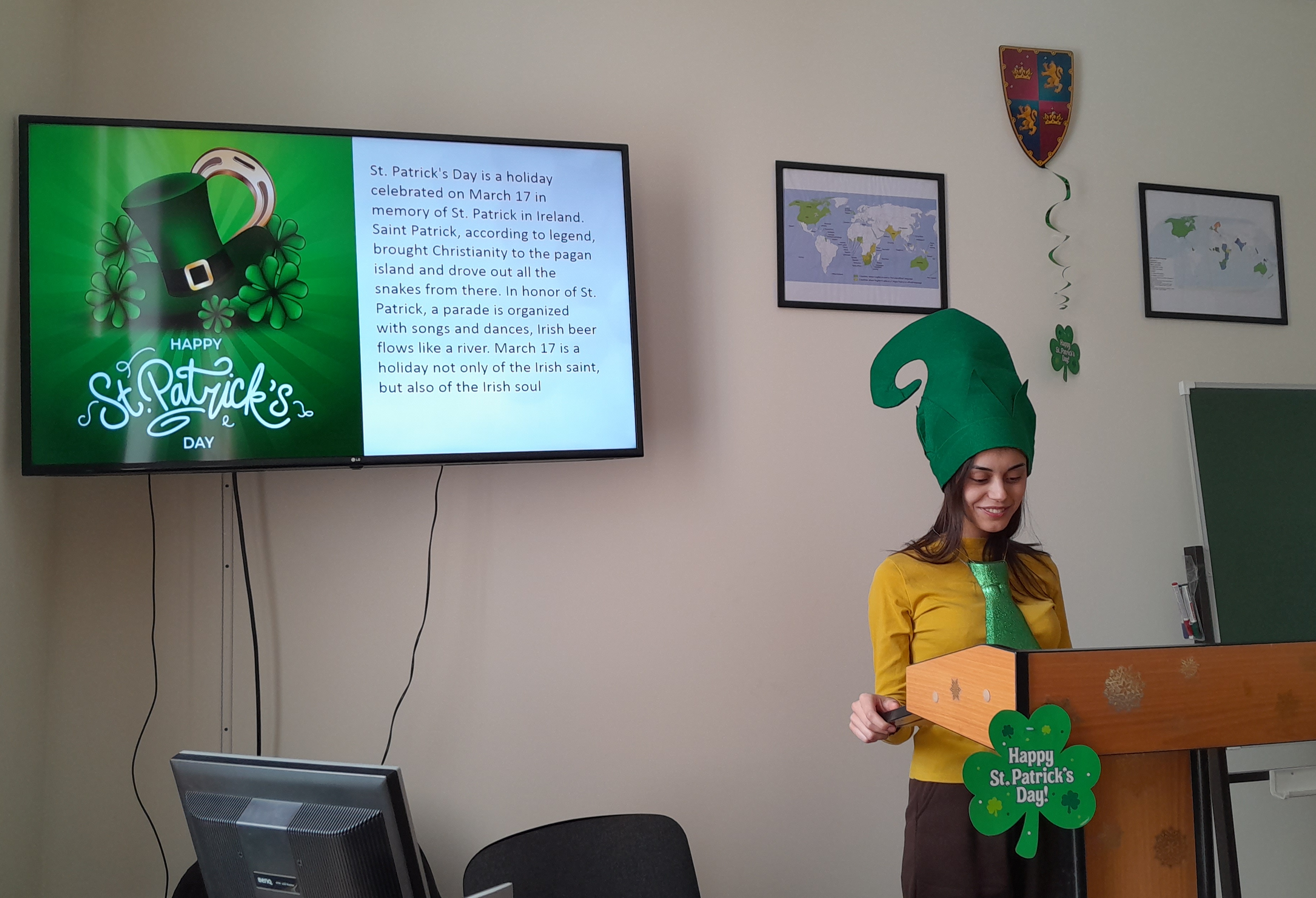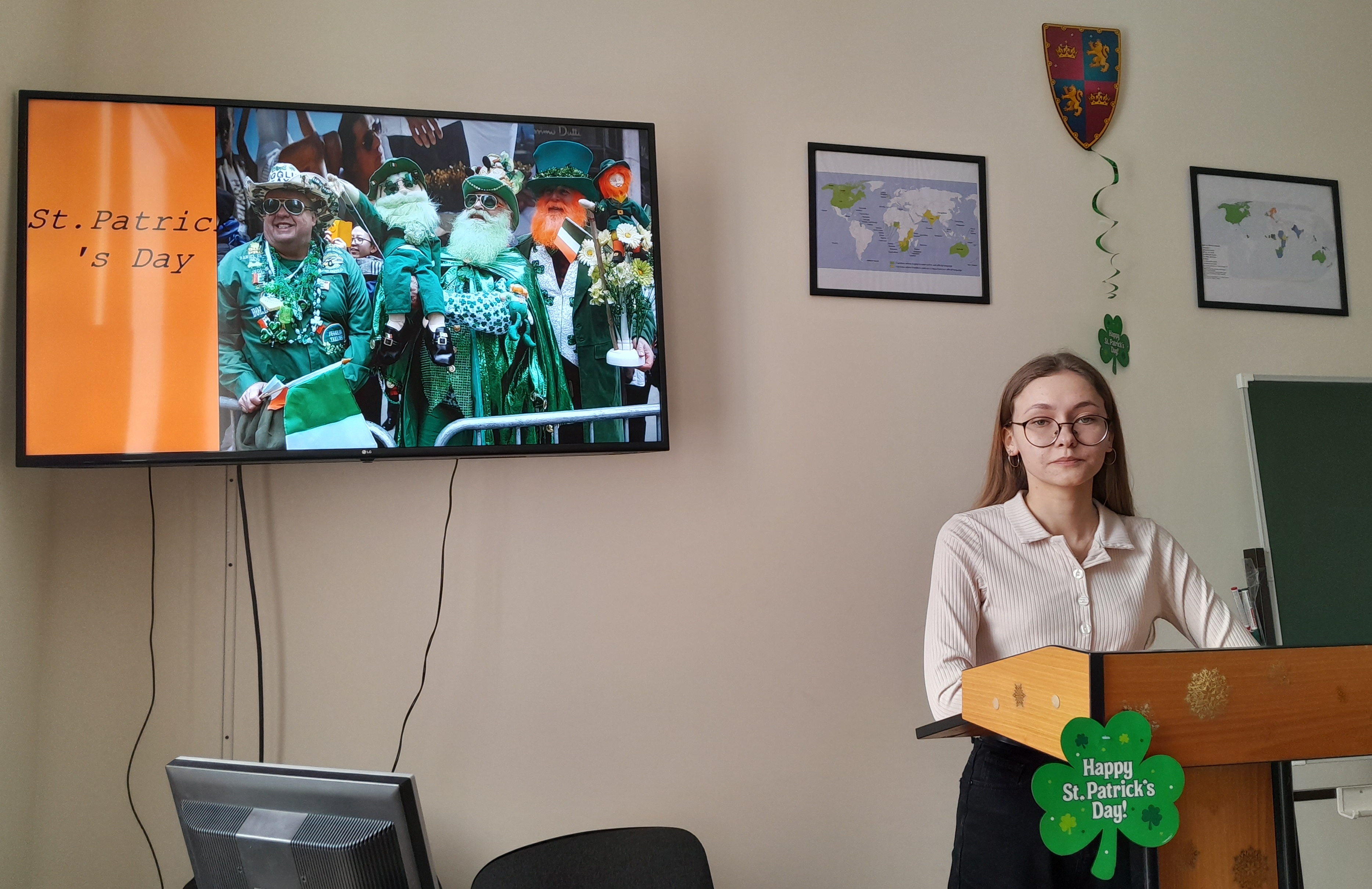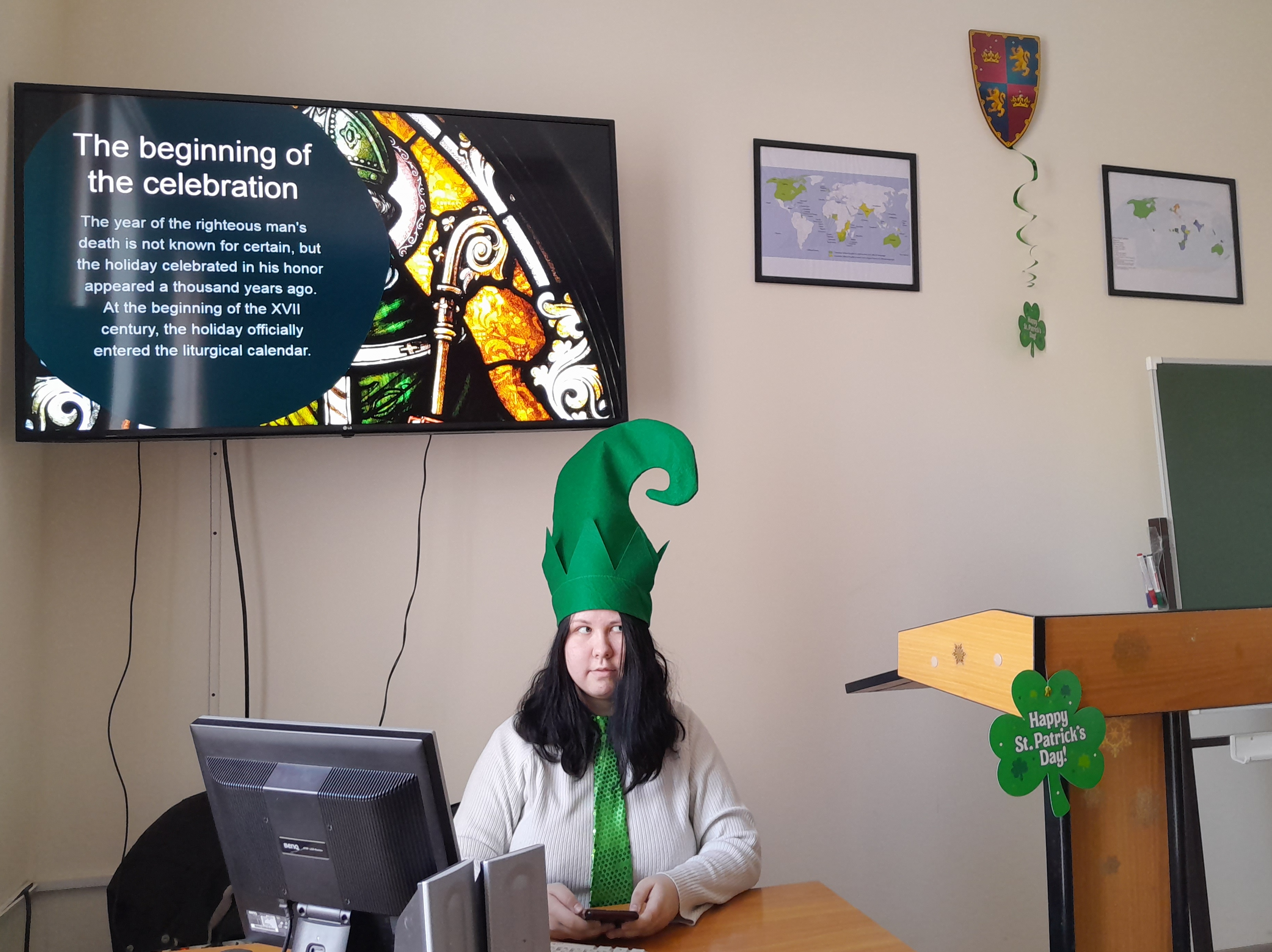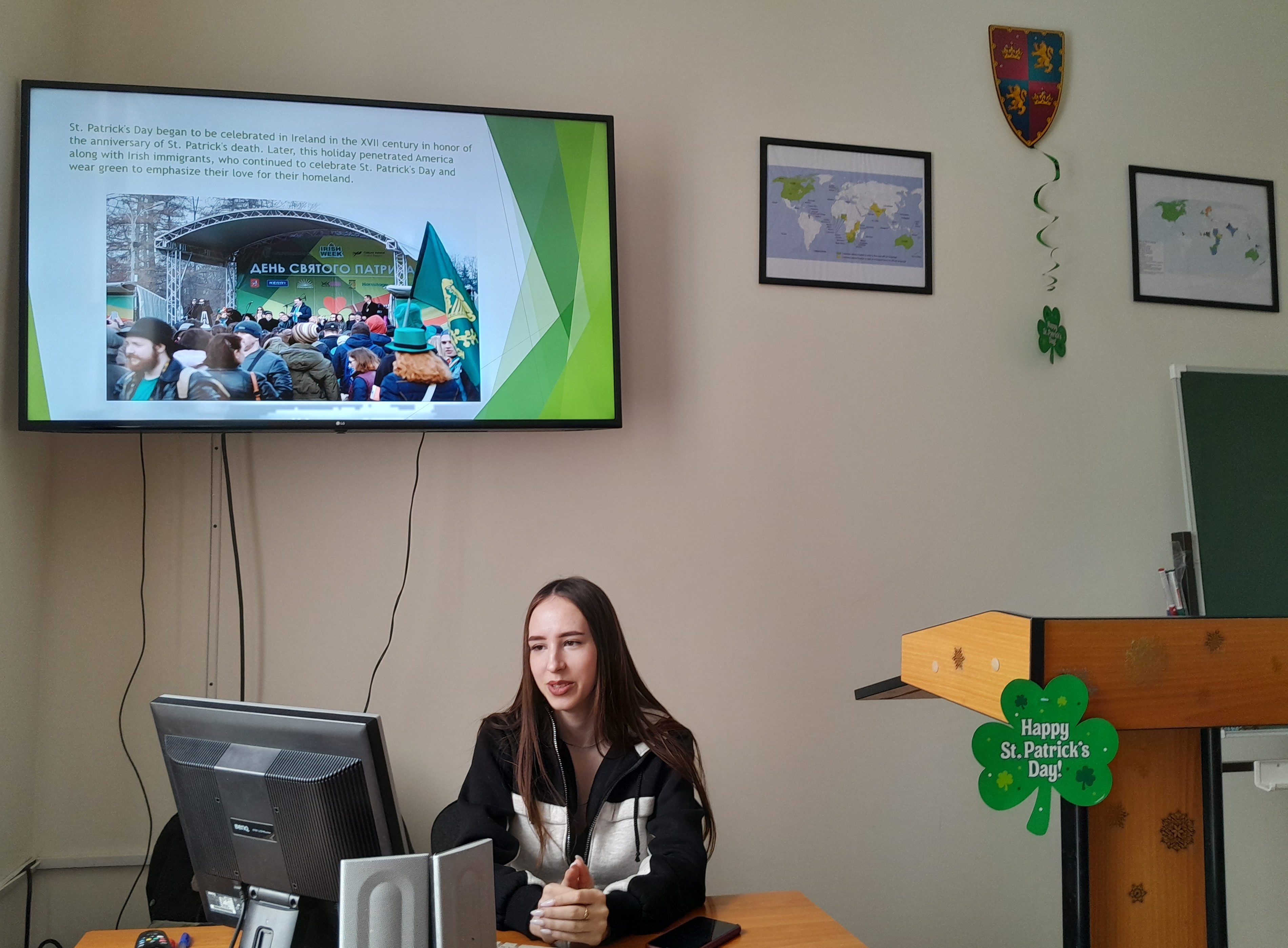 17 марта во всем мире ежегодно отмечается День святого Патрика. К этому дню было приурочено мероприятие кафедры иностранных языков в виде докладов студентов «День Патрика в разных странах: история, обычаи и традиции», которое было проведено на 29-ой учебной неделе.