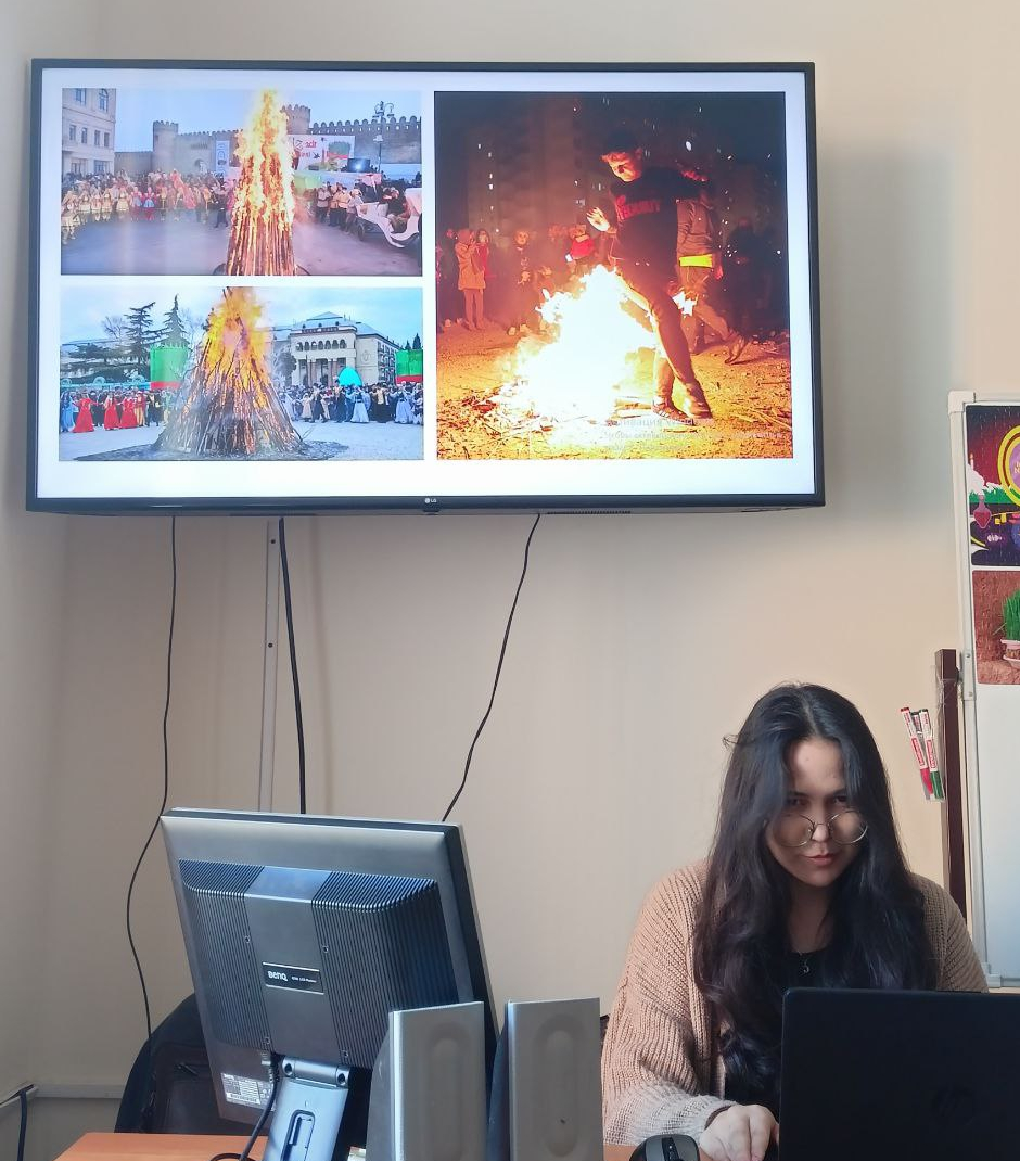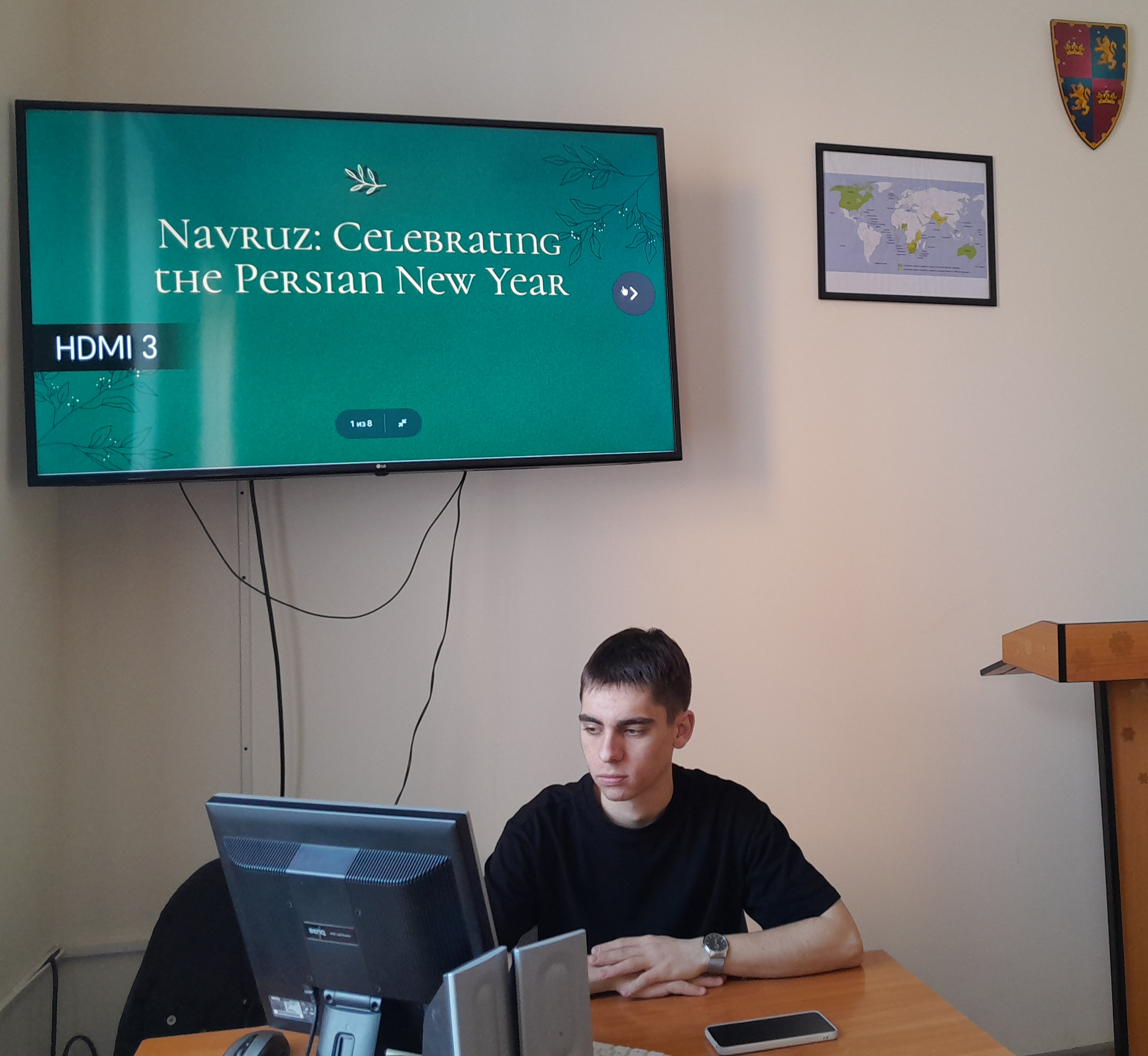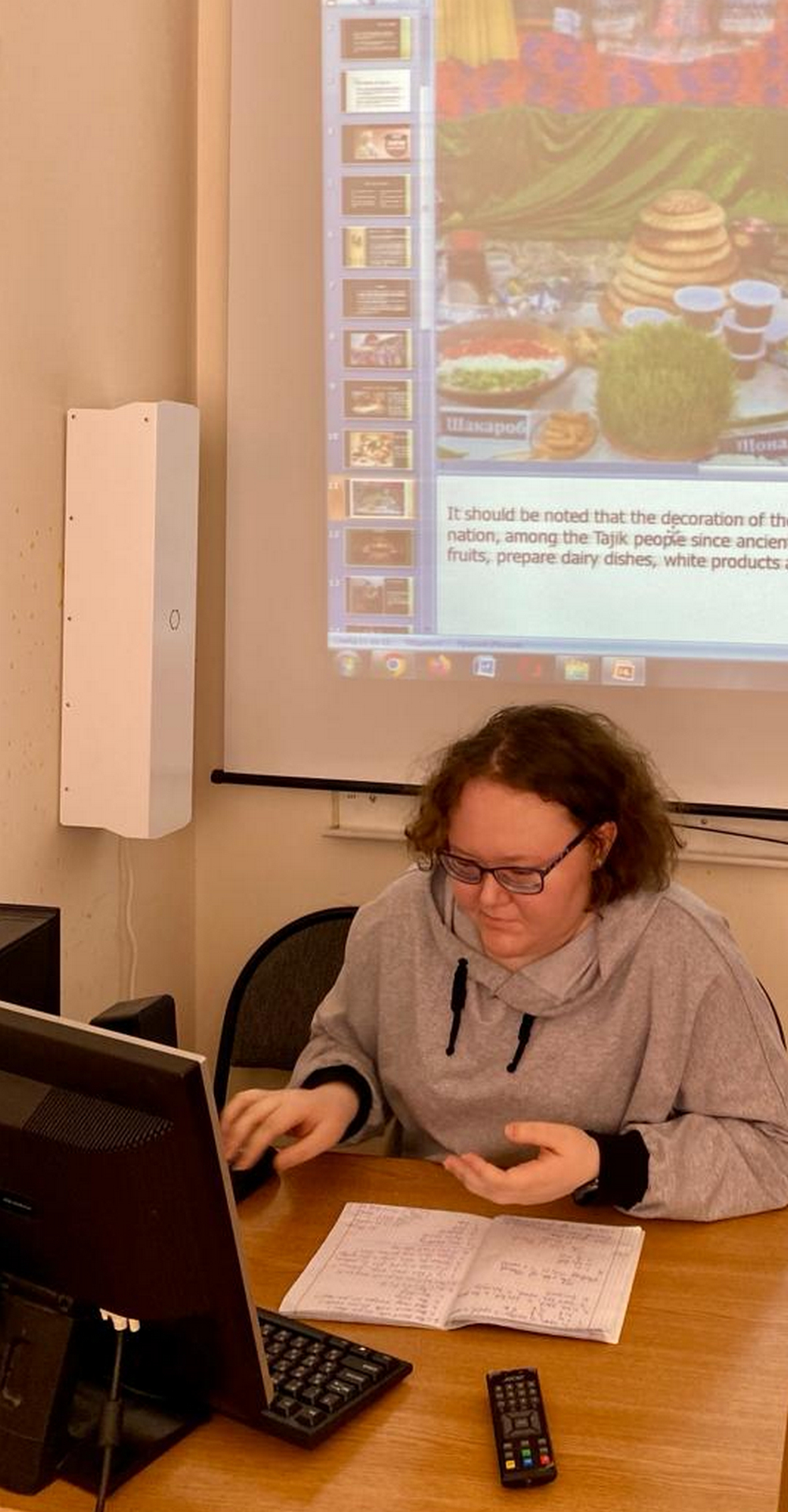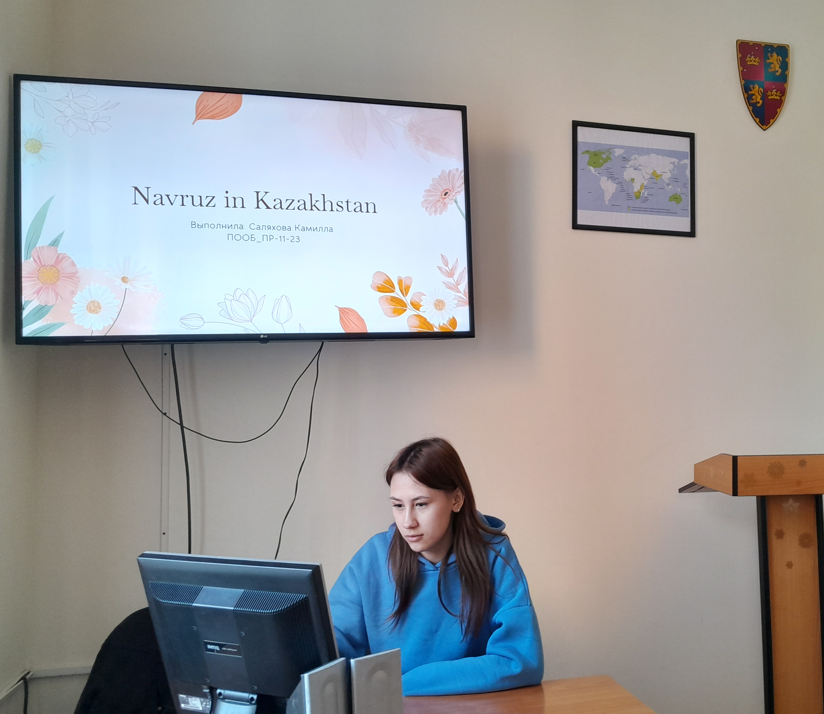 В мероприятии кафедры иностранных языков в дистанционном формате приняли участие и студенты Республики Казахстан. Например, Айым Тактарбекова (рук.: Серик Кульпеисов, Костанайский социально-технический университет им. академика З. Алдамжар) подготовила информативную и красочную презентацию, раскрывающую особенности празднования Навруза в Средней Азии.