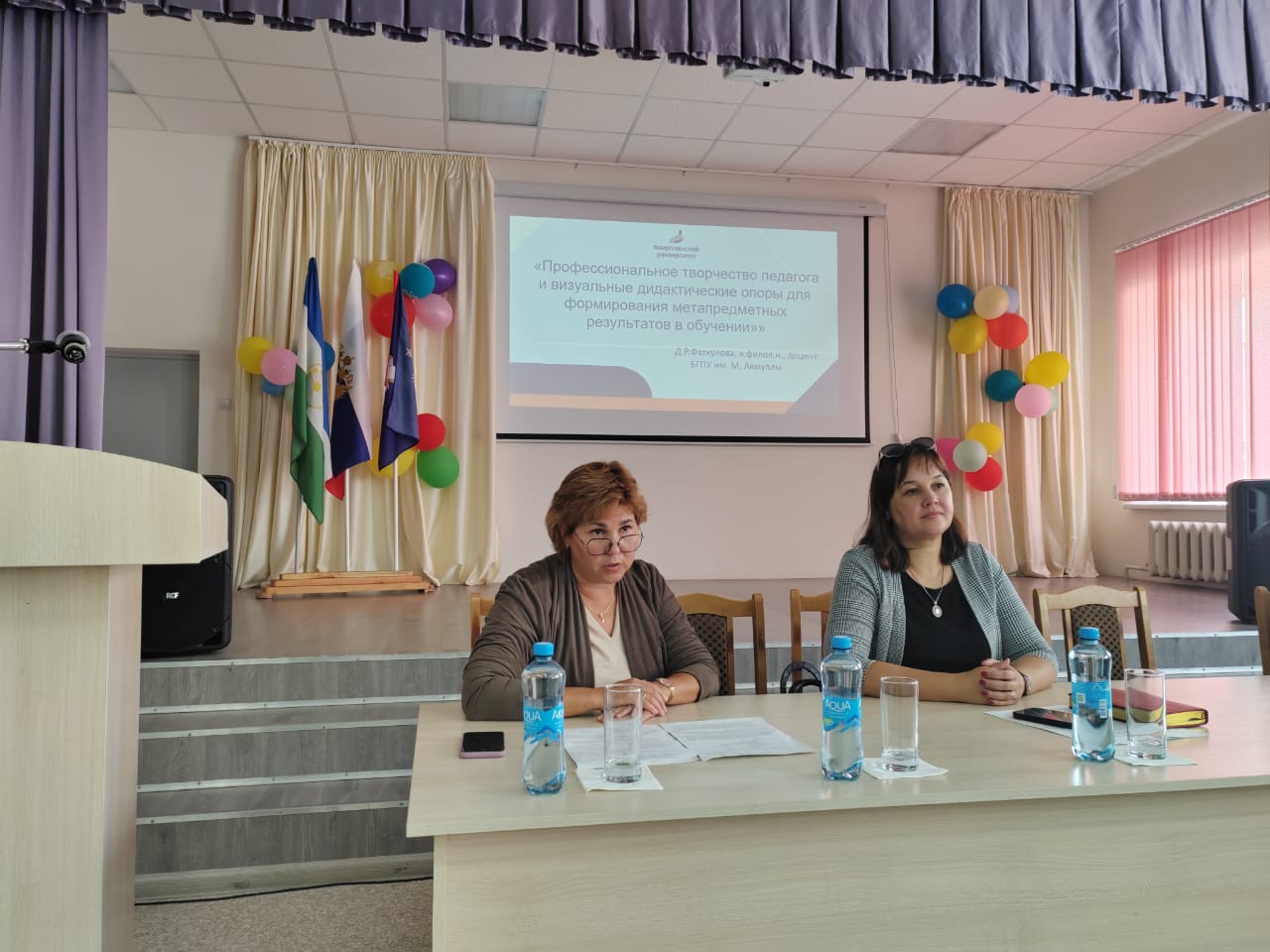 В рамках семинара-совещания Дина Раульевна выступила с докладом на тему «Профессиональное творчество педагога и визуальные дидактические опоры для формирования метапредметных результатов в обучении» перед директорами школ района и на секции учителей начальных классов, а также рассказала об опыте реализации данного научного направления кафедры иностранных языков как во время учебной технологической практики, так и на обучающих семинарах и вебинарах, и пригласила всех заинтересованных педагогов принять участие в конференциях, ежегодно проводимых Акмуллинским университетом в рамках национального педагогического форума.