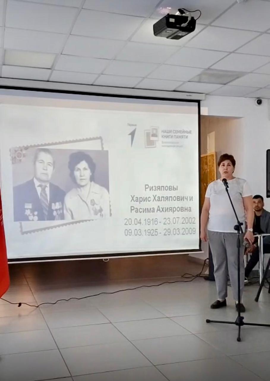 От кафедры иностранных языков в мероприятии приняла участие доцент Дина Раульевна Фатхулова, рассказавшая о тяжелом периоде жизненного пути Хариса Халяповича и Расимы Ахияровны Ризяповых.
