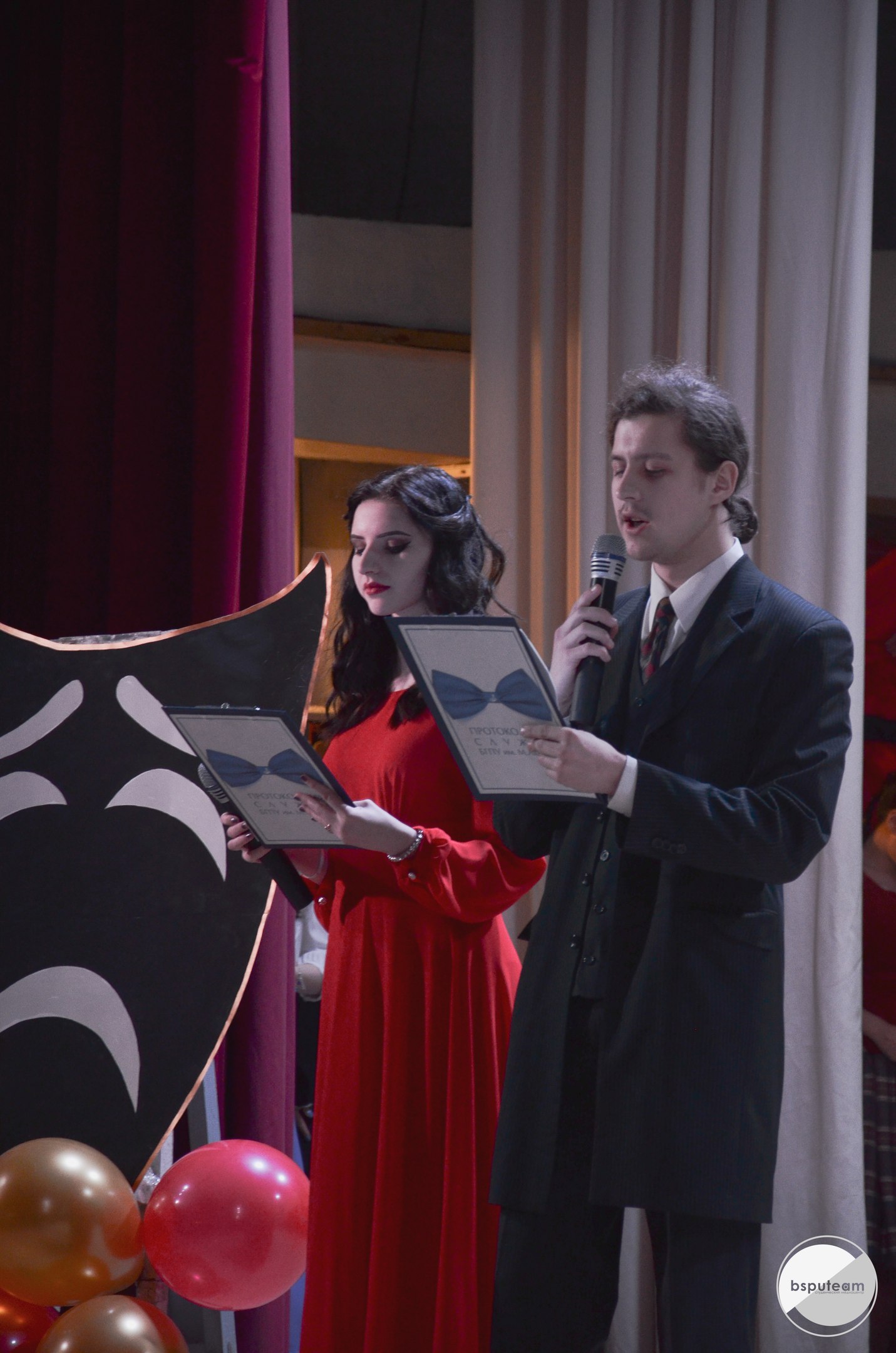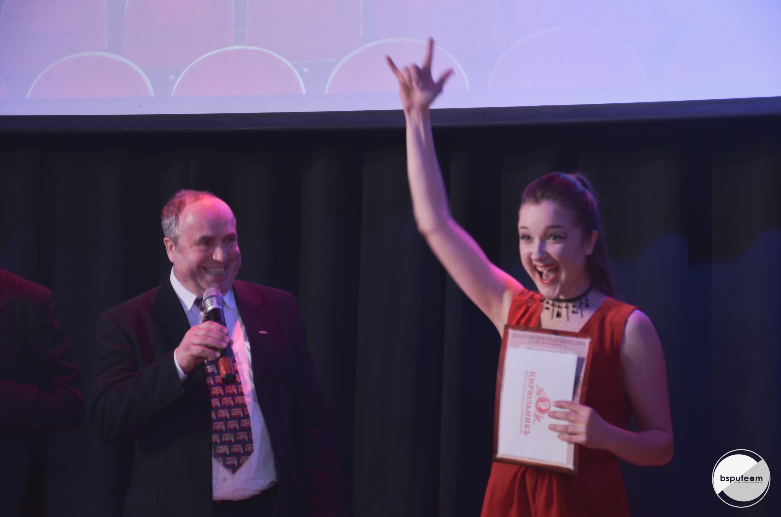 В актовом зале был аншлаг,  300 человек.