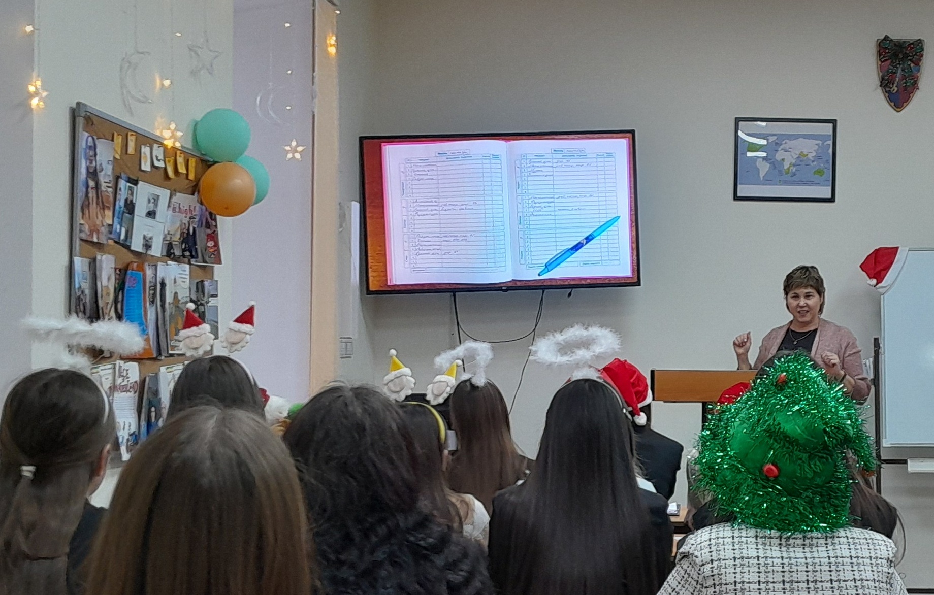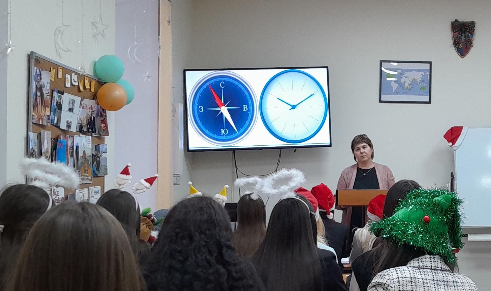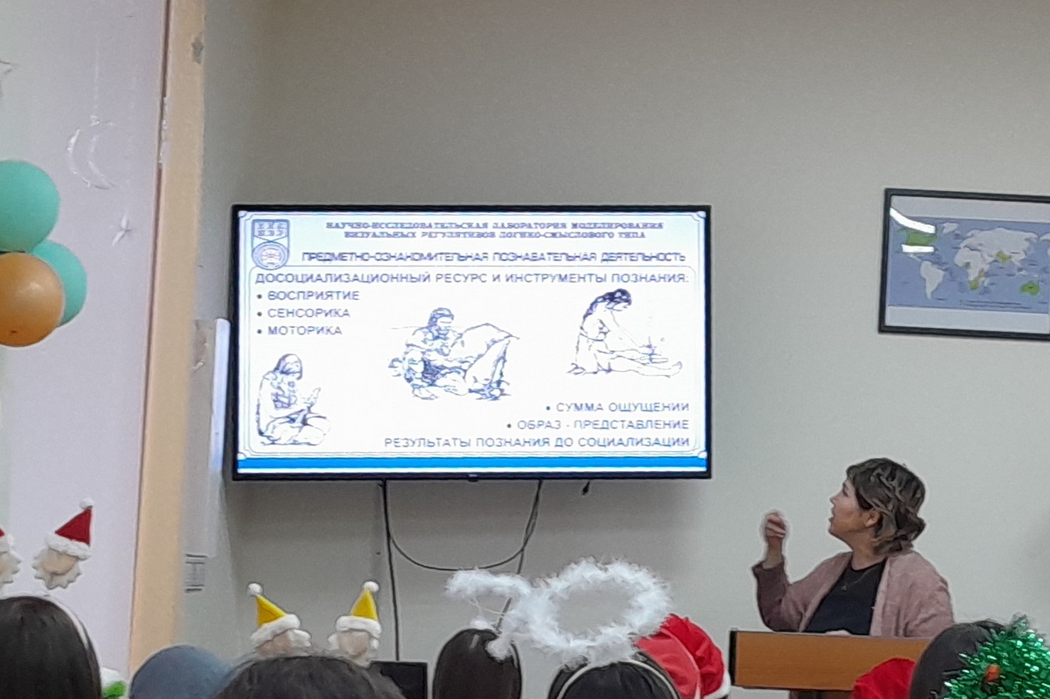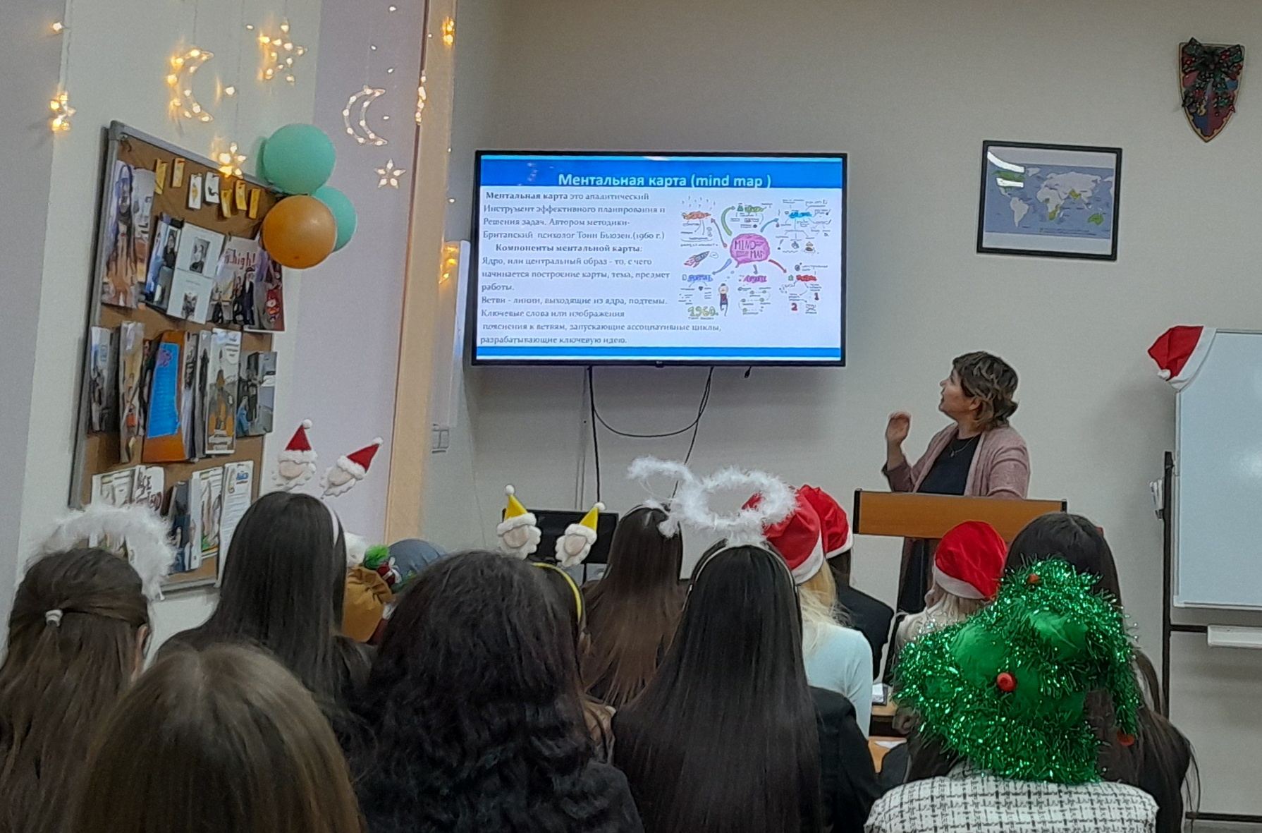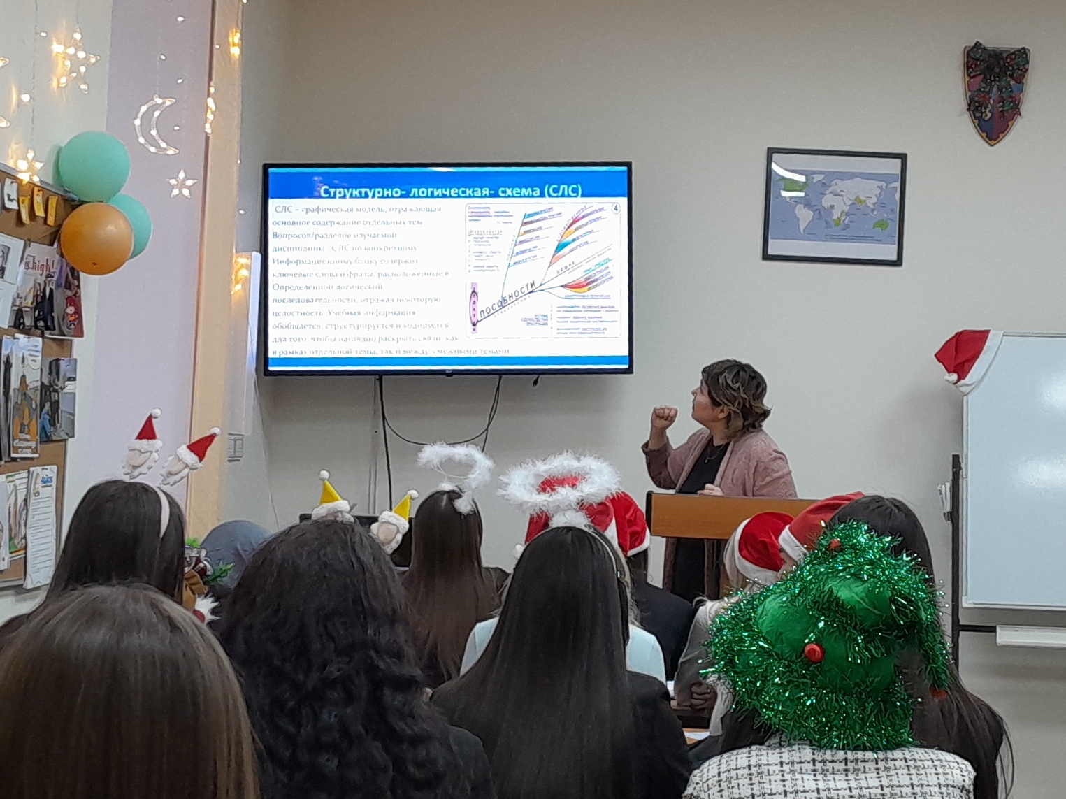 В самом начале встречи было рассказано о научно-исследовательской лаборатории моделирования визуальных регулятивов логико-смыслового типа, которая входит в состав научно-исследовательского института стратегии развития образования (БГПУ им. М. Акмуллы). Далее Дина Раульевна ознакомила всех присутствующих с условной стратификацией регулятивов и архетипами радиально-круговой графики, а также объяснила концепцию визуального дидактического регулятива «Волшебная шпаргалка» на примере разных языков (английский, французский, башкирский, китайский, арабский). В конце мероприятия студентам был представлен визуальный регулятив «Новый год».