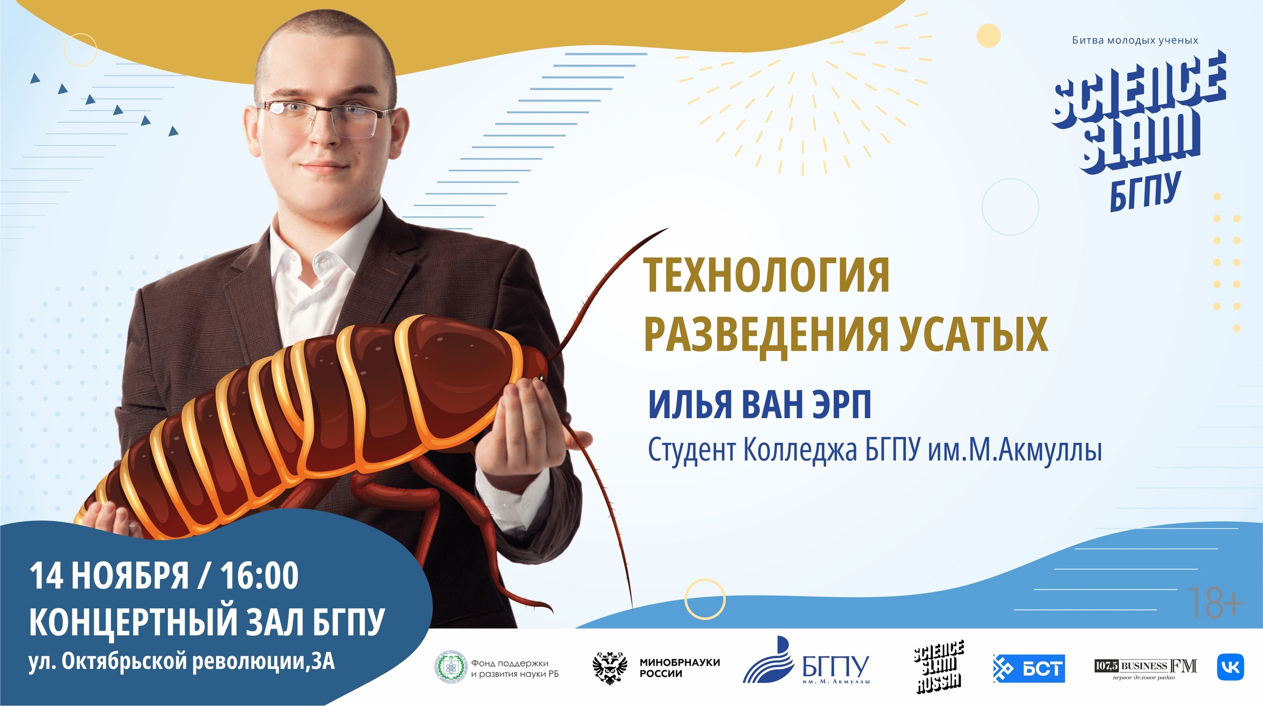 • студент Колледжа БГПУ им.М.Акмуллы Илья Ван-Эрп , Расскажет о перспективах разведения тараканов.