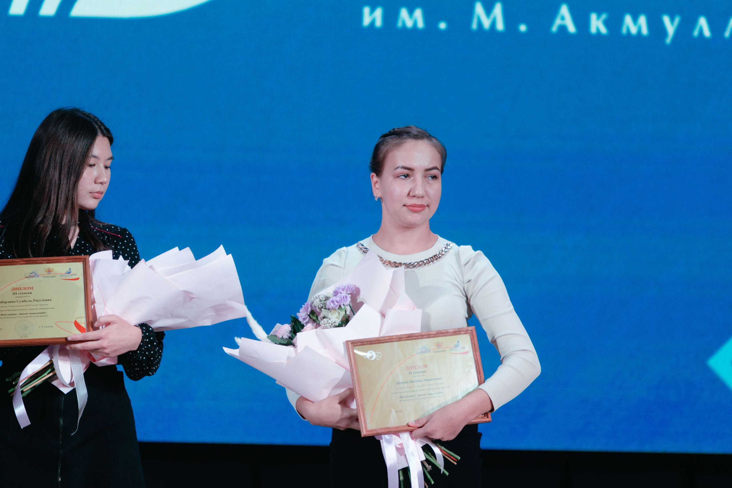 Диплома 2 степени удостоена студентка 3 курса Акмуллинского колледжа Полина Ценёва, представившая эссе на татарском языке «Наставник: диалог поколений».