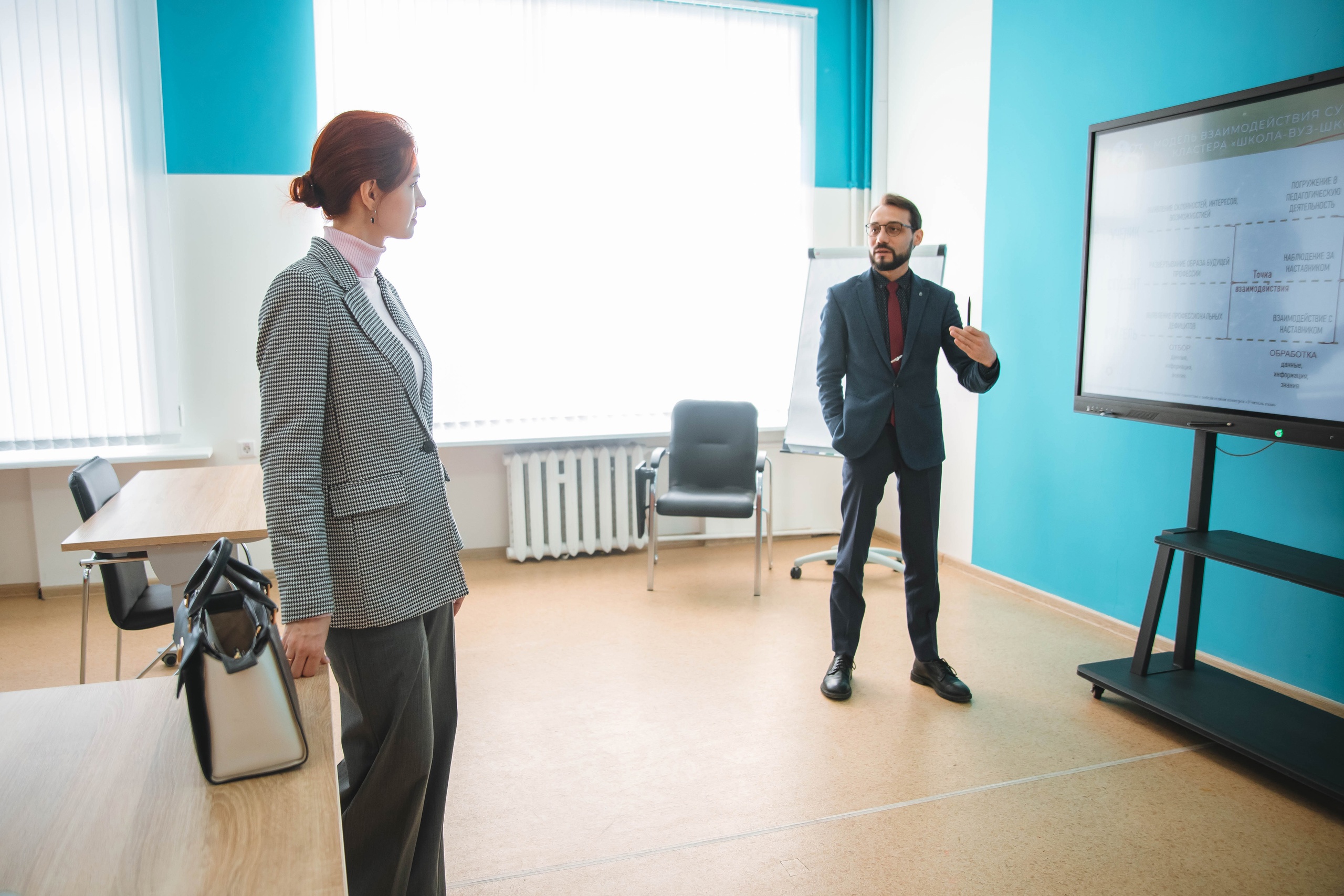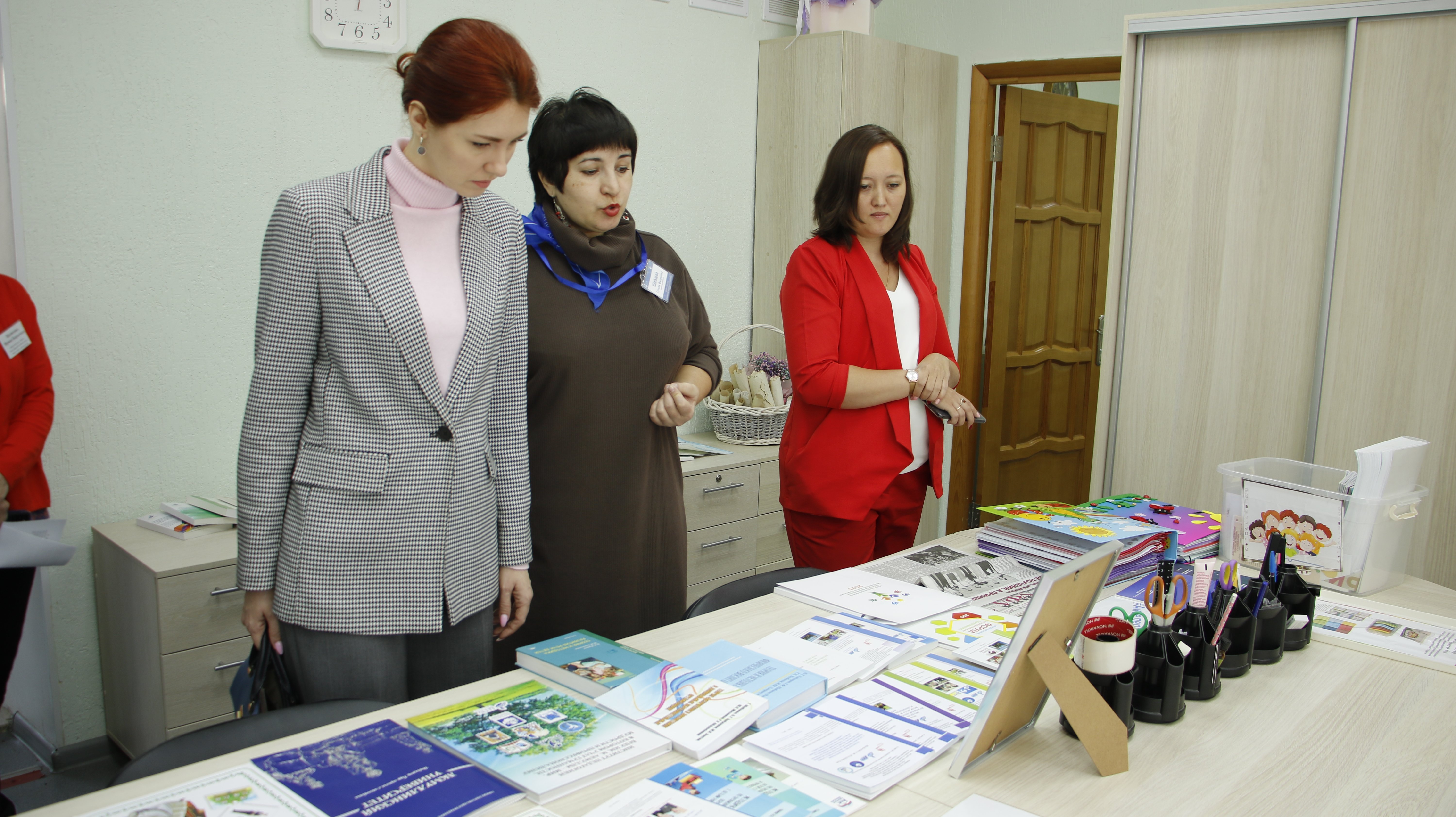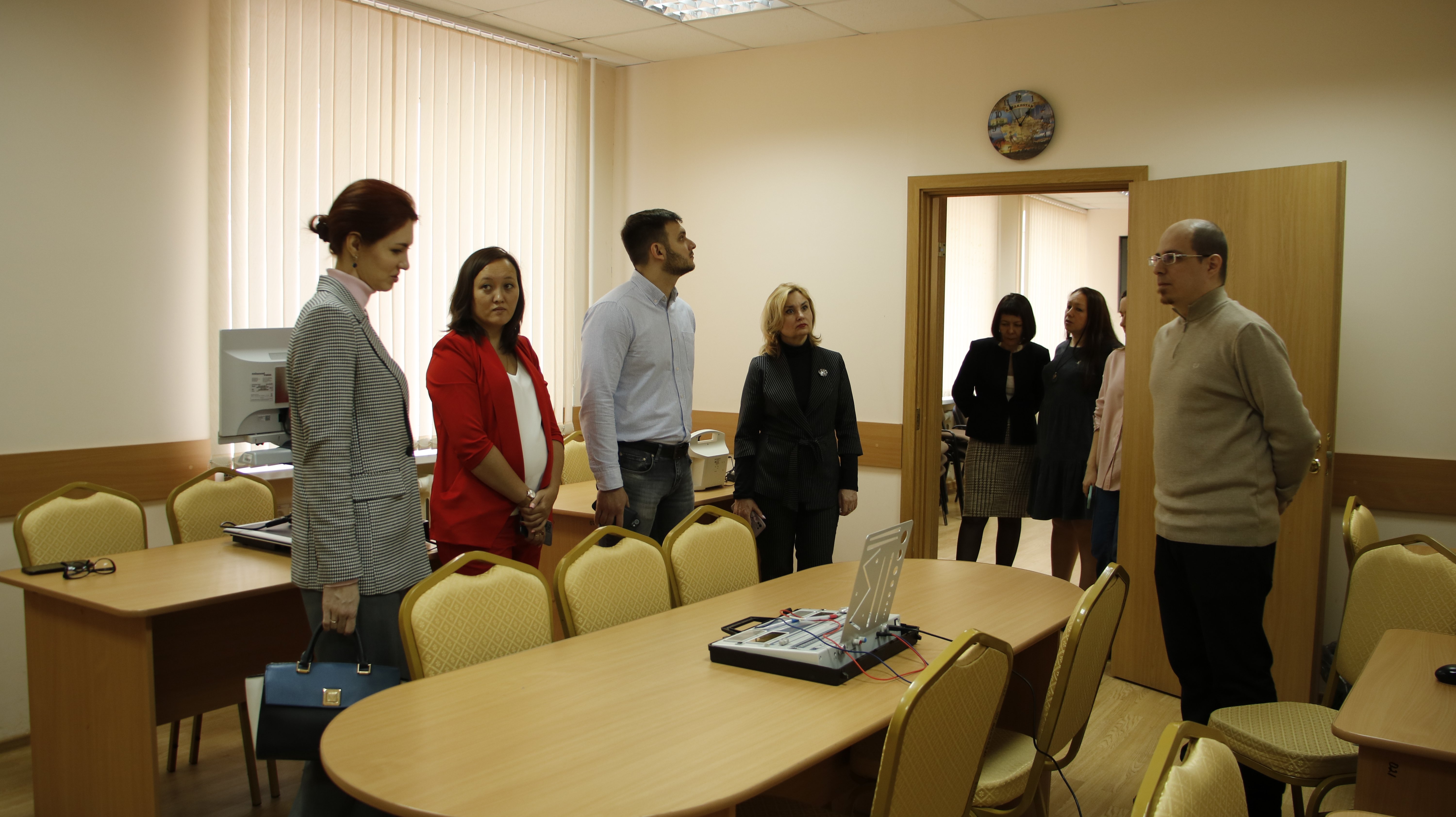 Директор Института педагогики Ирина Боронилова познакомила делегацию с направлениями научных исследований в области психолого-педагогического образования Института педагогики. Гости посетили кафедру дошкольной педагогики и психологии, узнали о деятельности научных направлений кафедр Института педагогики, результатах исследований инновационных площадок, разработанных методических пособиях, учебно-методических изданиях, перспективных направлениях научных исследований. Делегация Евразийского НОЦ ознакомилась с авторскими настольно-печатными, интерактивными играми для детей, разработанными преподавателями и студентами, результатами научных проектов. Также делегация посетила факультет психологии.
