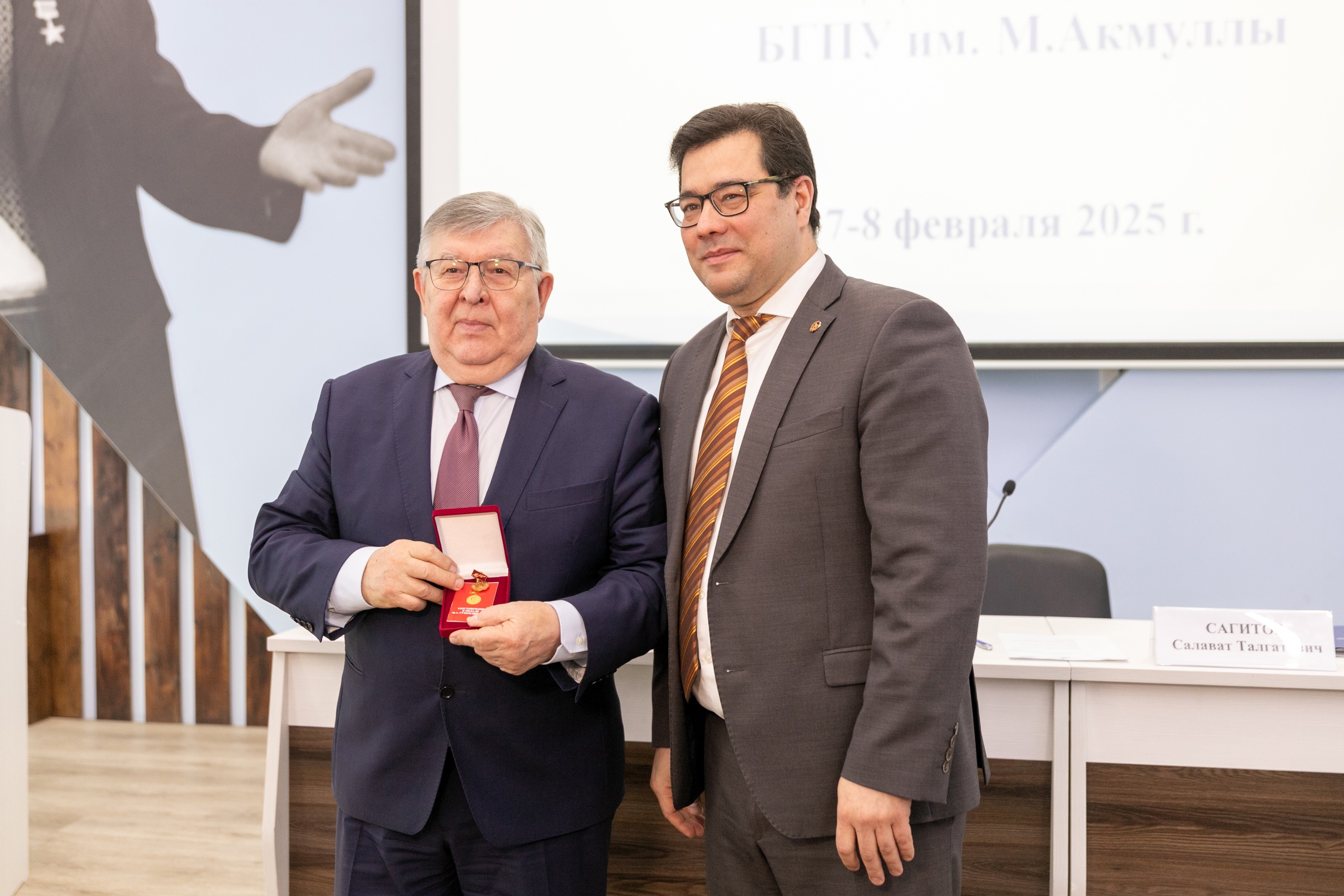 Александр Дегтярев передал библиотечному фонду Акмуллинского университета свои труды. Салават Сагитов от имени студентов и преподавателей поблагодарил гостя за лекцию и подарок и вручил профессору Дегтяреву медаль В.А. Сухомлинского – одну из высших наград Башгоспедуниверситета.