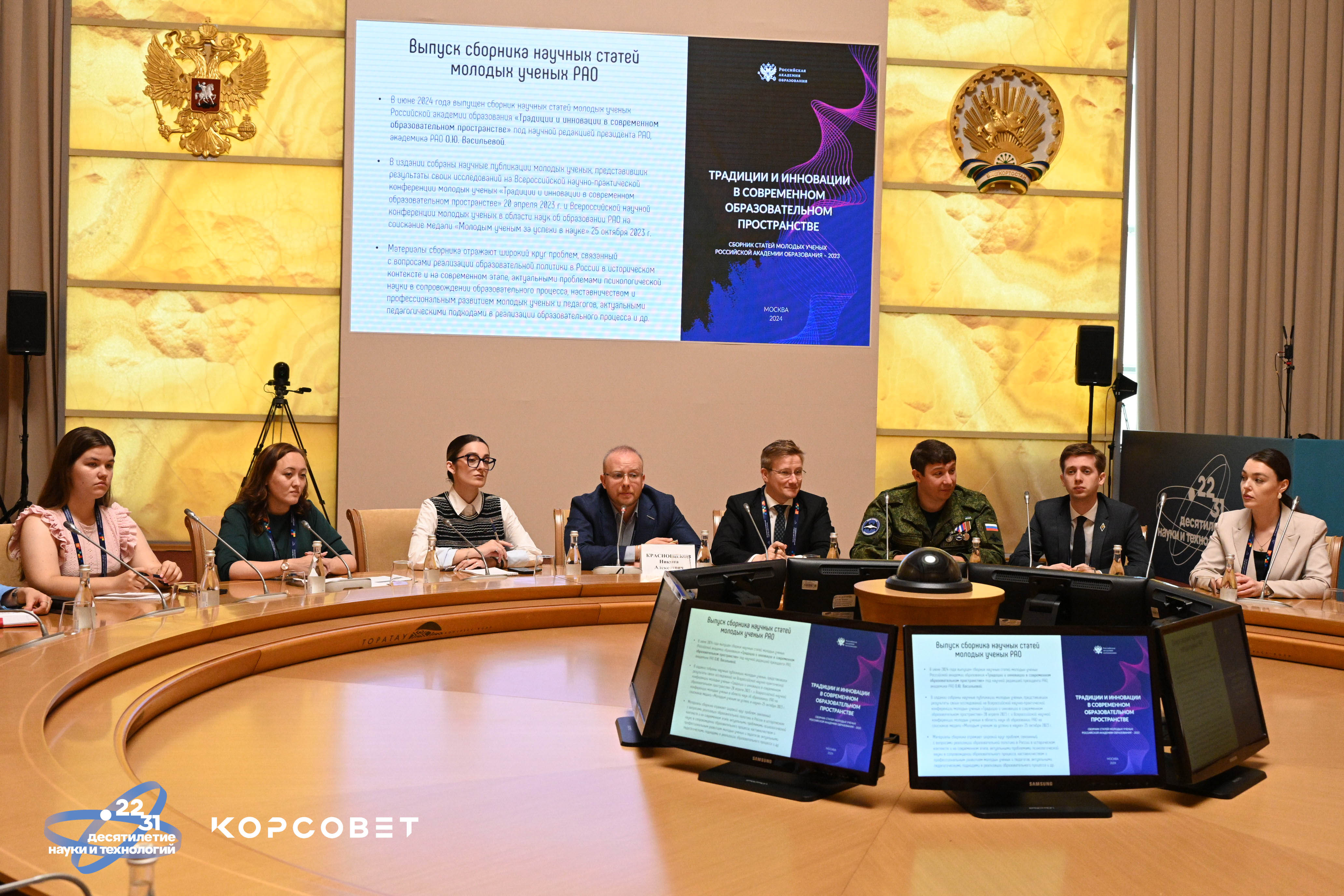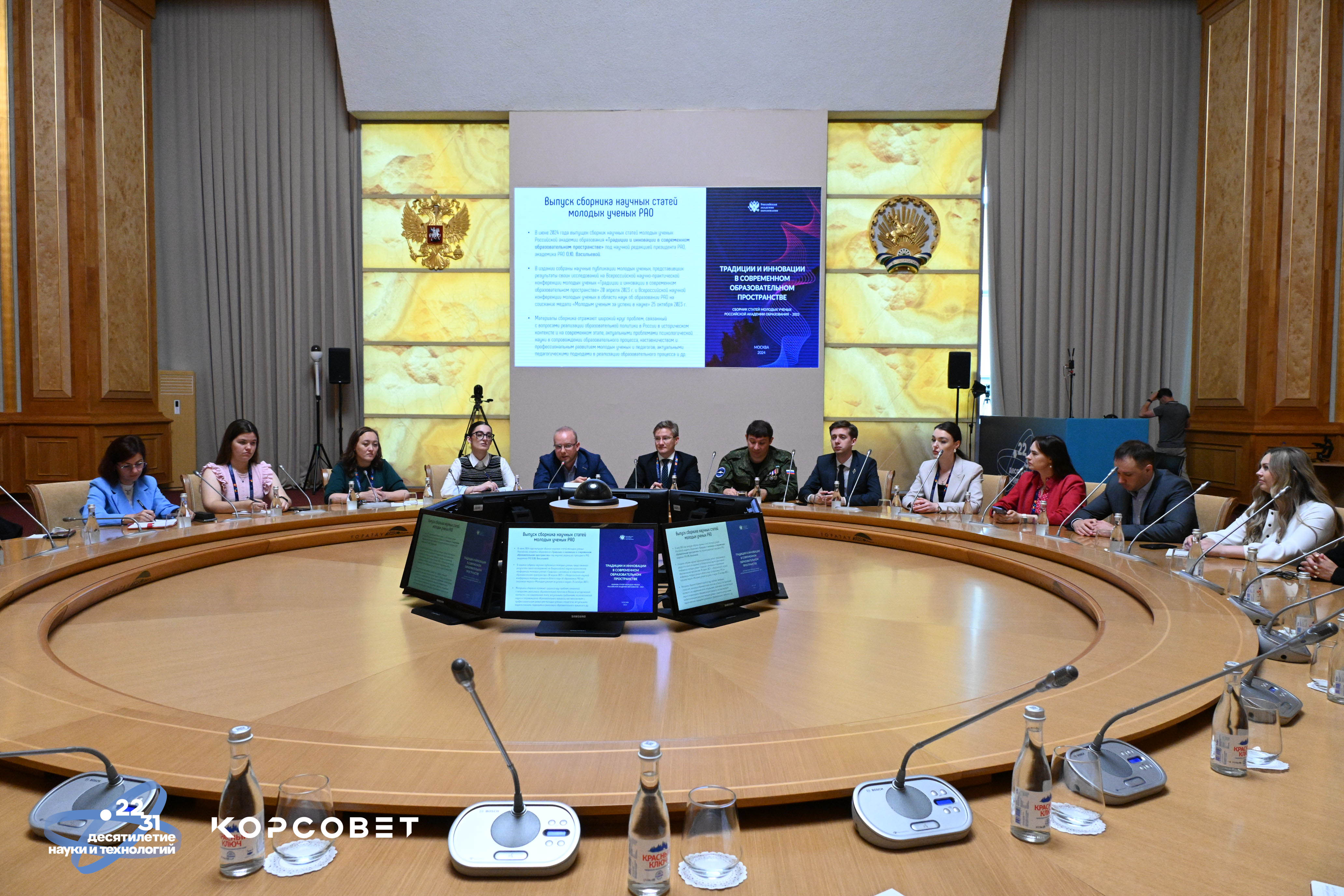 Открыл круглый стол председатель Совета молодых ученых Российской академии образования, член Координационного совета по делам молодежи в научной и образовательной сферах Совета при Президенте Российской Федерации по науке и образованию Никита Краснощеков. Он рассказал о деятельности Совета молодых ученых РАО и отметил важность объединения молодых ученых педагогической отрасли под эгидой Российской академии образования. Модераторами круглого стола выступили заместитель председателя Совета молодых ученых РАО Максим Воронин и главный эксперт Центра развития педагогического образования РАО, ответственный секретарь Совета молодых ученых РАО Амарида Артюхина.