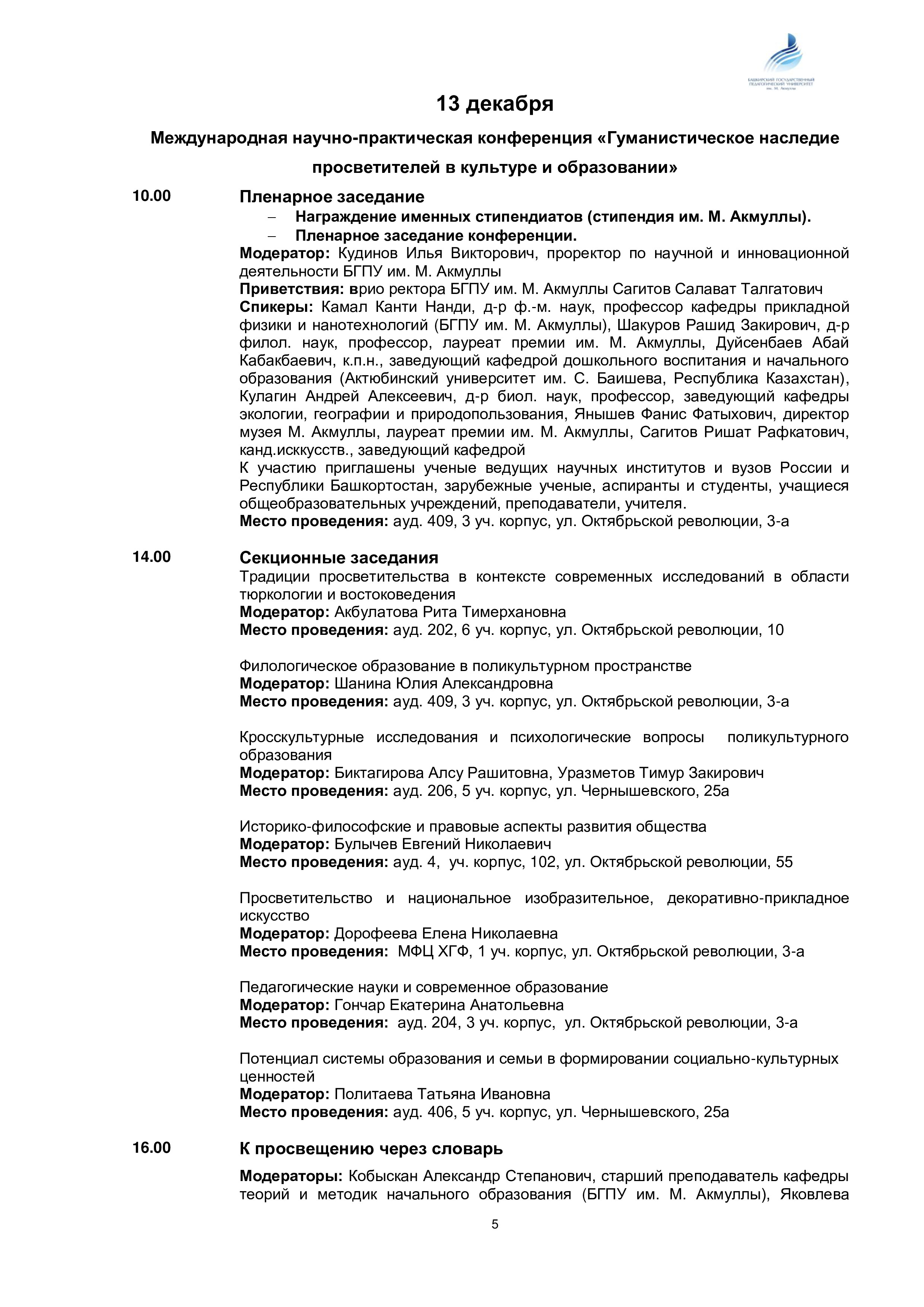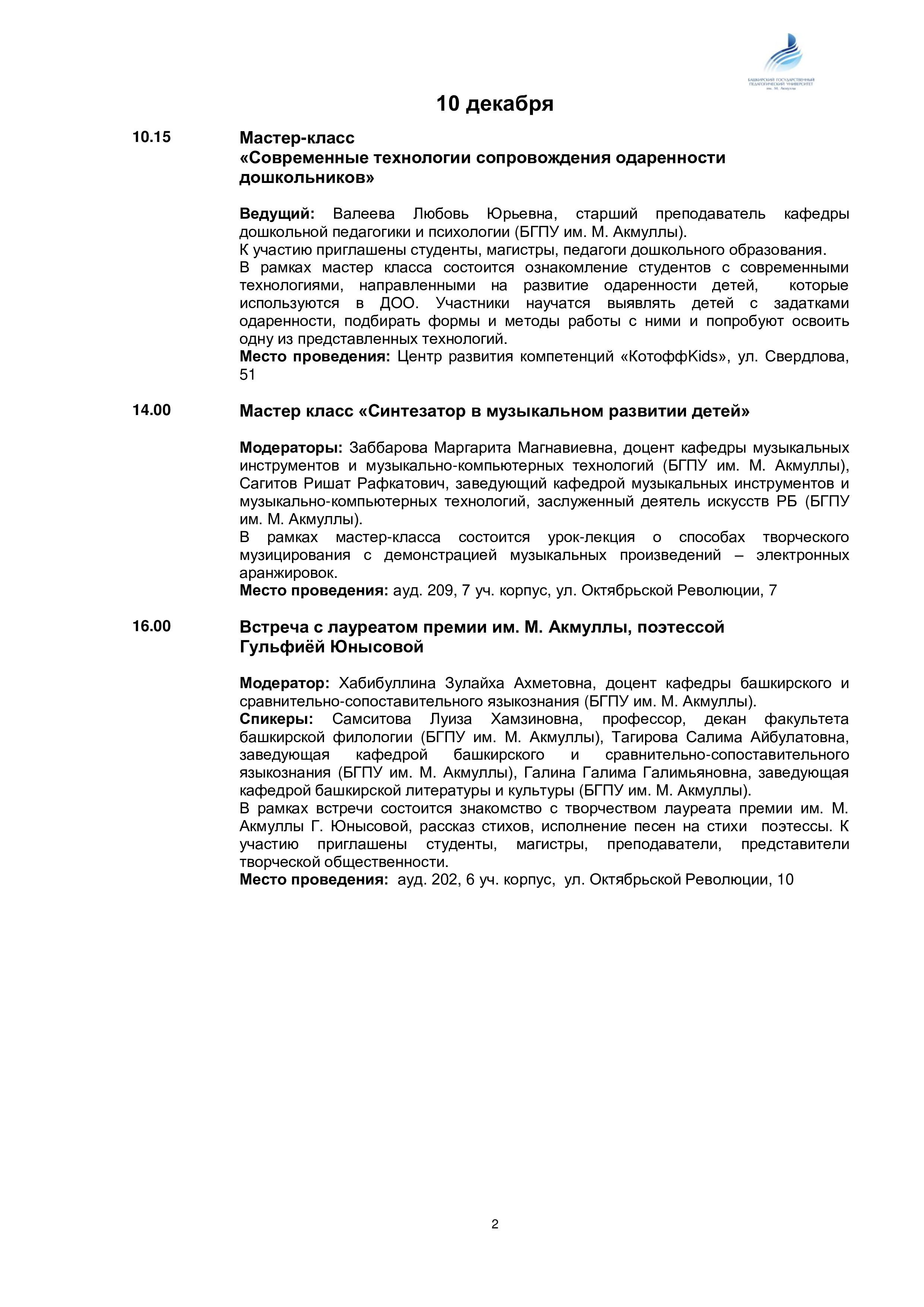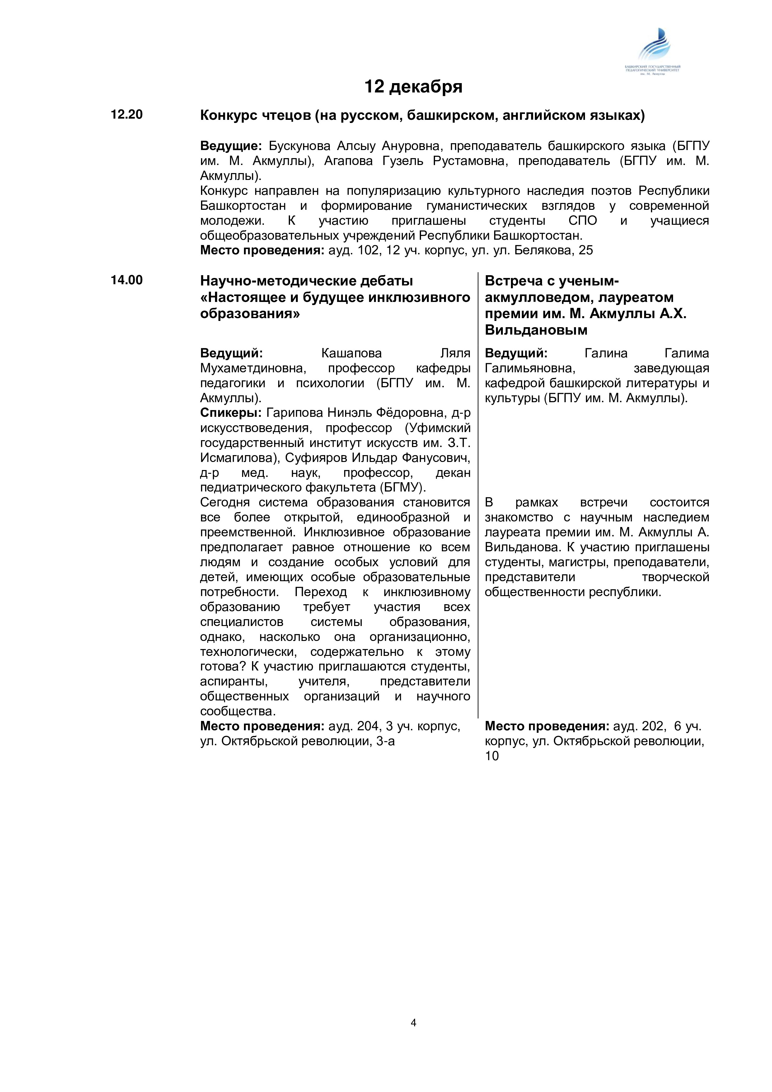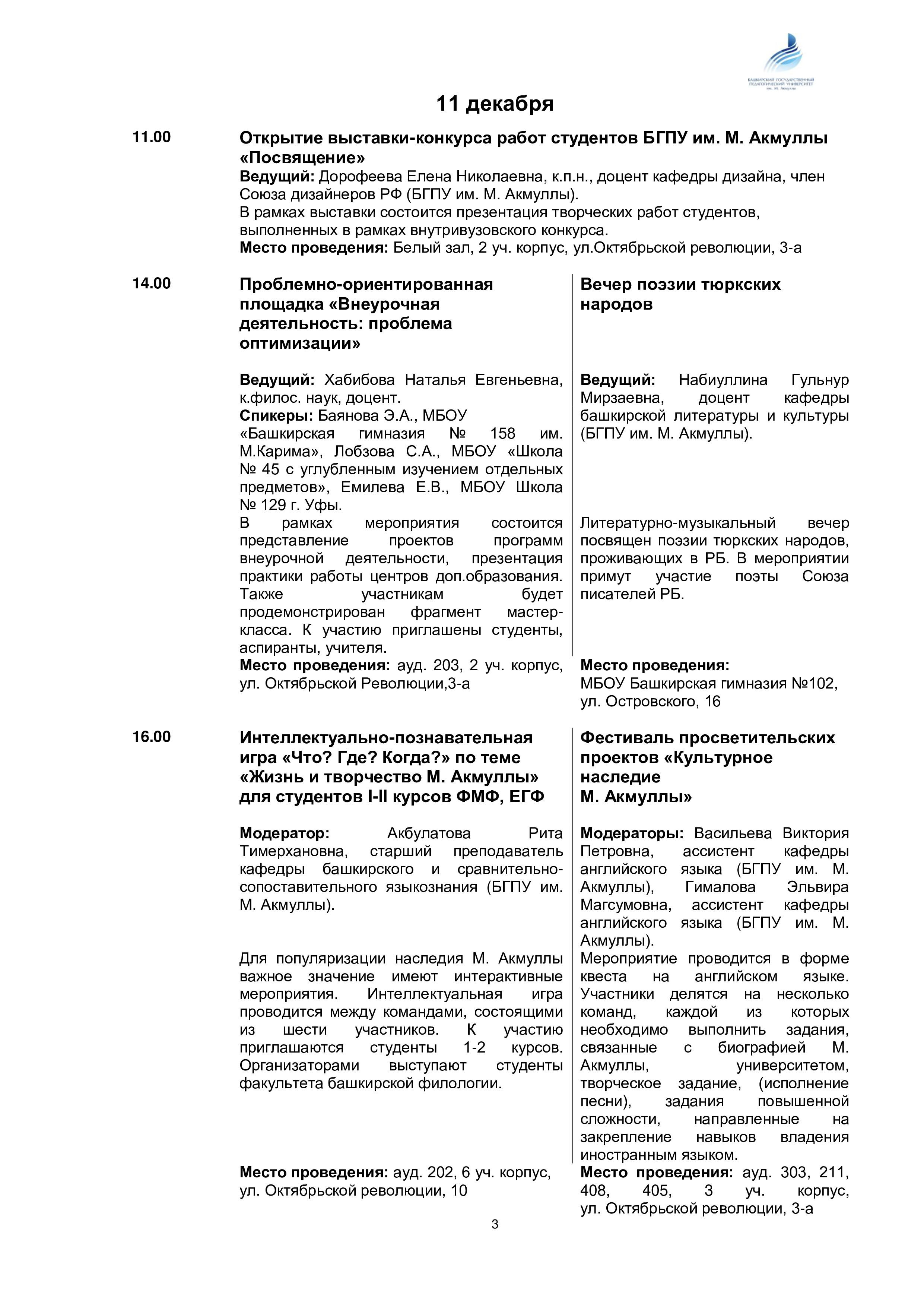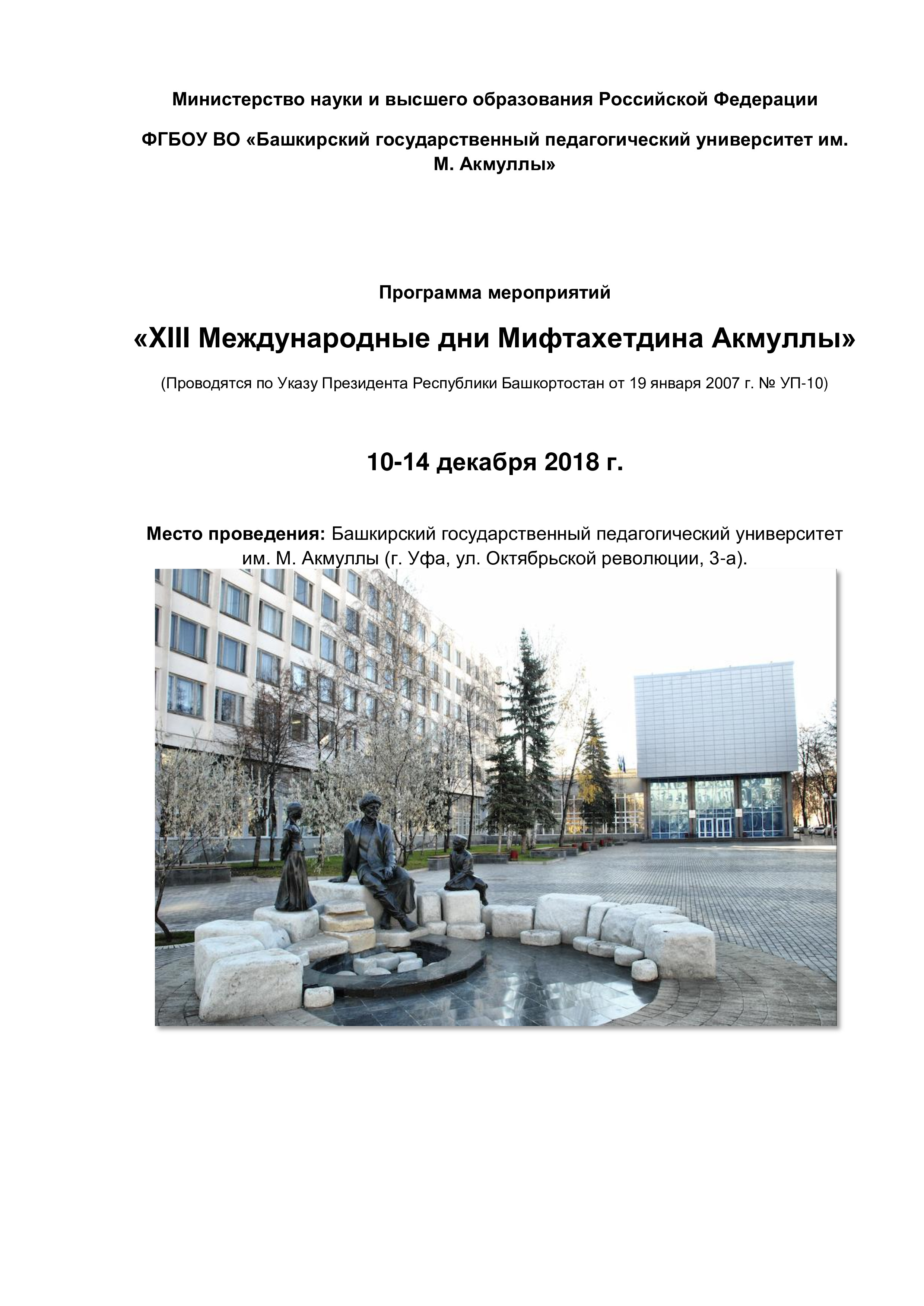 Программа Мероприятий "Международные дни М. АКмуллы"