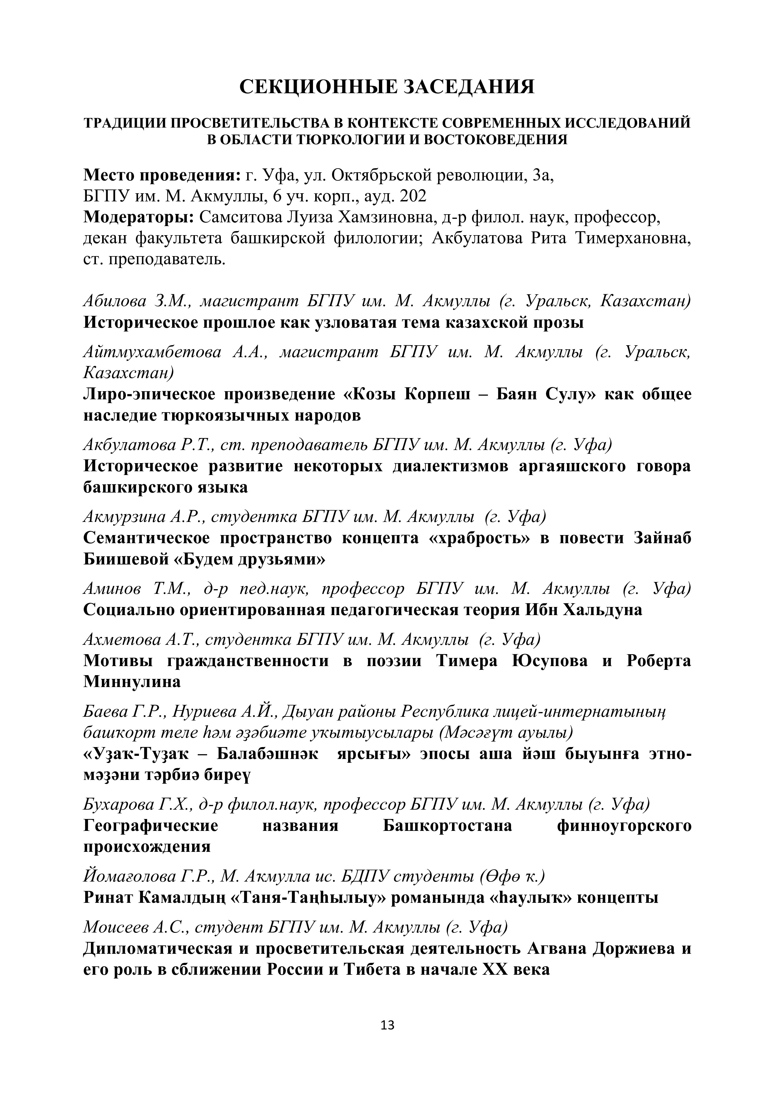 Уважаемые коллеги! 13 декабря 2018 г. в Башкирском государственном педагогическом университете им. М. Акмуллы в 13-й раз пройдет Международная научно-практическая конференция "Гуманистическое наследие просветителей в культуре и образовании".