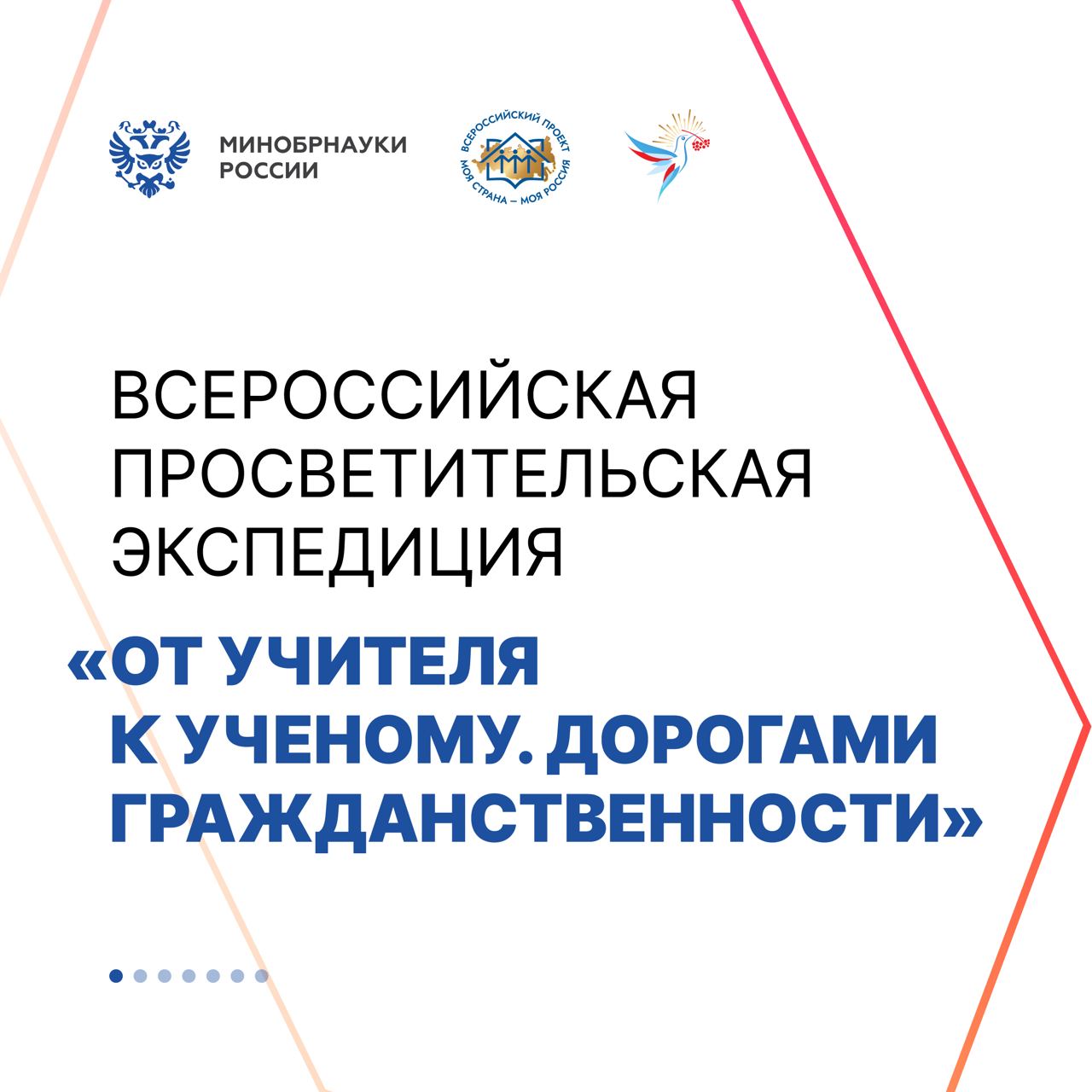 В рамках выполнения Государственного задания Министерства науки и высшего образования РФ Российский государственный гуманитарный университет планирует проведение Всероссийской просветительской экспедиции «От учителя к учёному. Дорогами гражданственности». Экспедиция направлена на объединение ресурсов науки, широкой практики и просветительства, выявление и распространение лучшего педагогического опыта, современных авторских технологий и методик гражданско-патриотического воспитания молодежи.