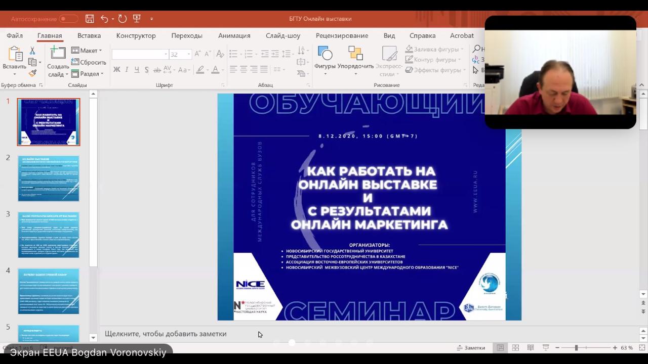 В ходе обучающего семинара генеральный директор Богдан Игоревич Вороновский рассказал об основных итогах работы 2020 года, об основных инструментах набора иностранных студентов в 2021 году, а так же проинформировал ВУЗы о графиках онлайн-выставок в 2021 году.