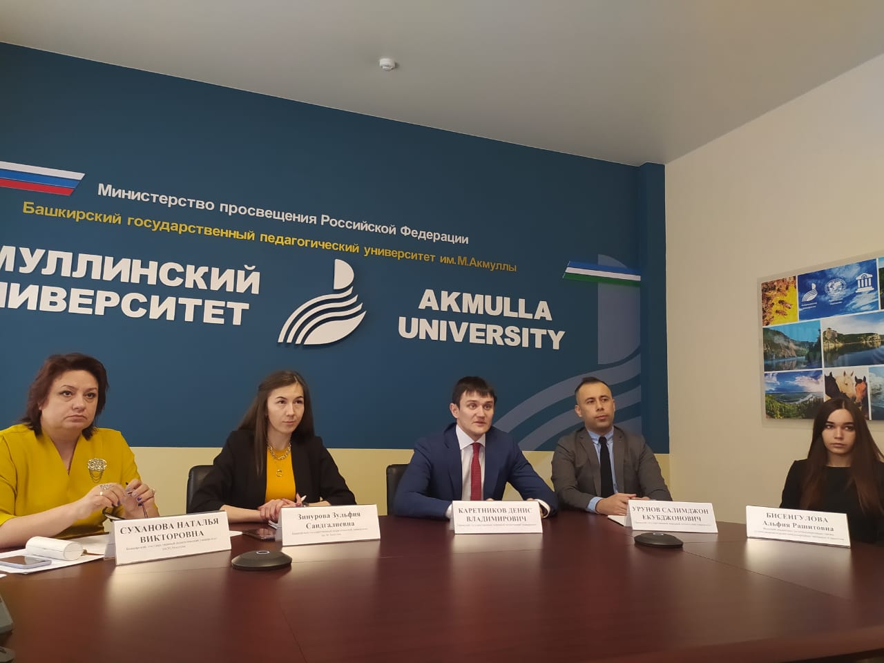 Во встрече приняли участие заместитель ответственного секретаря Приемной комиссии БГПУ им.М.Акмуллы Зульфия Зиннурова, ведущий специалист международных связей БГПУ Альфия Бисенгулова, проректор по организации приёма студентов и профориентационной деятельности УГНТУ Денис Каретников, начальник отдела внеучебной и визово-регистрационной работы управления международного сотрудничества УГНТУ Салимджон Урунов,  . Модератором выступила проректор по научной деятельности Акмуллинского университета Наталья Суханова.