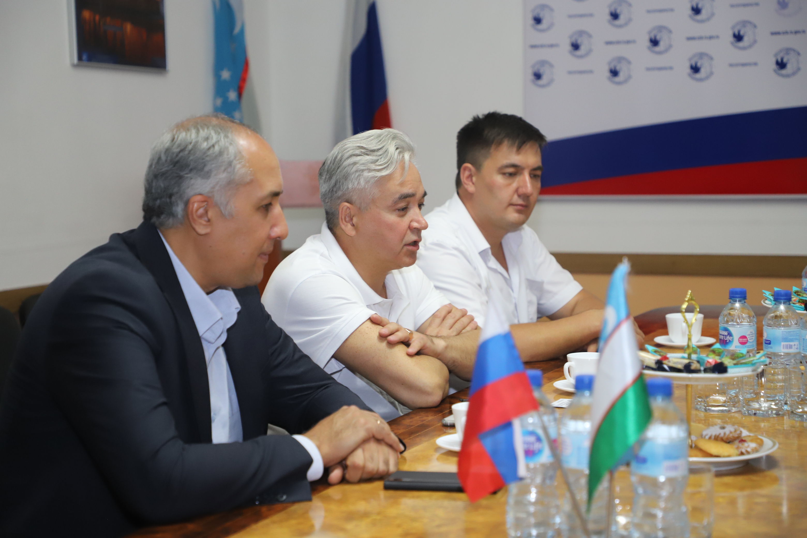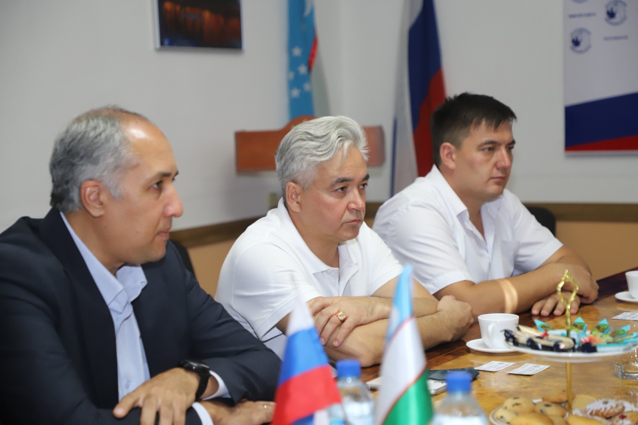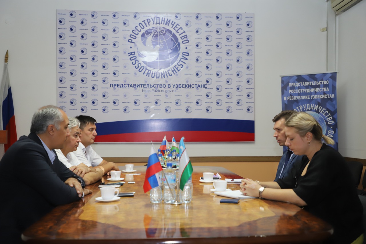Далее делегация направилась в представительство Россотрудничества в Республике Узбекистан, где состоялась рабочая встреча с руководителем представительства Вождаевым М.В. На повестке дня стояли вопросы участия сотрудников Акмуллинского университета в отборе граждан Узбекистана, изъявивших желание обучаться в России за счет средств российского бюджета в соответствии с установленной Правительством Российской Федерации квотой в 2022/23 учебном году. В 2021-2022 учебном году в пределах  квоты в БГПУ им. М.Акмуллы поступили 9 иностранных граждан (1 студент из Испании, 6 из Республики Казахстан, 1 из Республики Таджикистан и один студент из Индии). В ходе собрания также обсудили детали участия БГПУ им. М.Акмуллы в международной выставке-ярмарке «Российское образование», которая пройдет с 5 по 7 октября 2021 года в Ташкенте.