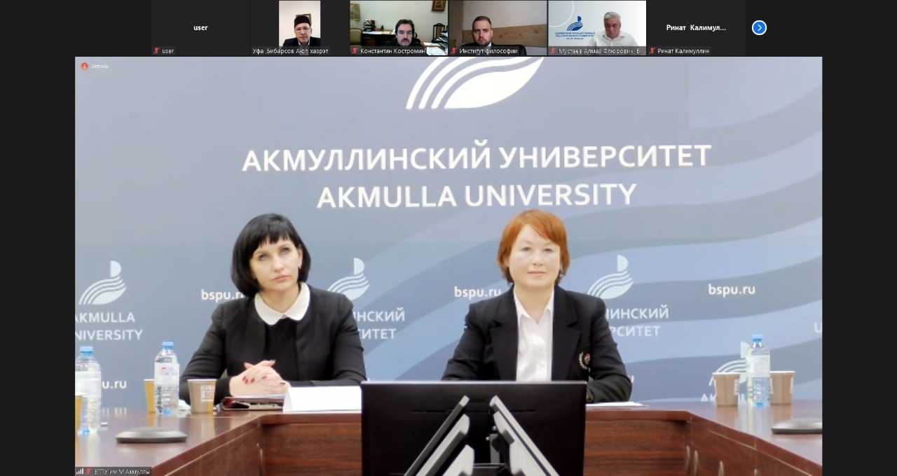 Модератором от Акмуллинского университета выступила доктор философских наук, профессор кафедры обществознания, права и социального управления Рида Зекрист. В работе конференции приняли участие видные российские представители государственных и негосударственных образовательных и научно-исследовательских учреждений, ученые, эксперты и богословы, религиозные и общественные деятели, а также представители Духовного управления мусульман Республики Башкортостан и Российского исламского университета Центрального духовного управления мусульман России.