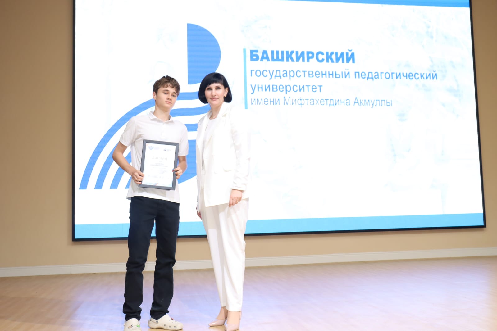 В ходе праздничной церемонии ректор БГПУ им. М.Акмуллы  Салават Сагитов в видеоприветствии поздравил участников конференции, 50 победителей и активистов Акмуллинской олимпиады по русскому языку. Далее состоялось торжественное награждение победителей Олимпиады, ребята получили почетные дипломы за подписью заместителя министра просвещения Российской Федерации Дениса Грибова вместе с памятными сувенирами из рук атташе по образованию и науке Посольства России в Киргизской Республике Роберта Федорова.
