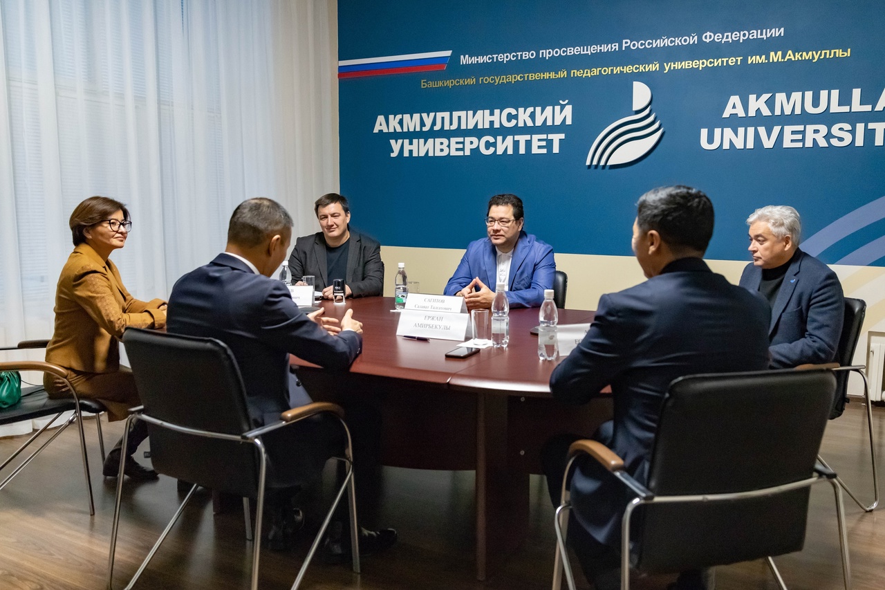 В ходе мероприятий Национального педагогического форума Акмуллинский университет посетила делегация Аркалыкского педагогического института имени И. Алтынсарина (Республика Казахстан). В нее вошли профессор, председатель правления – ректор Амирбекулы Ержан, декан факультета педагогики и филологии Айбек Калиев, декан факультета истории и искусства Гульбаршин Конкина, декан факультета естествознания и информатизации Алибек Ескермесулы и ассоциированный профессор, руководитель научно-исследовательского центра Жанар Байсеитова.
