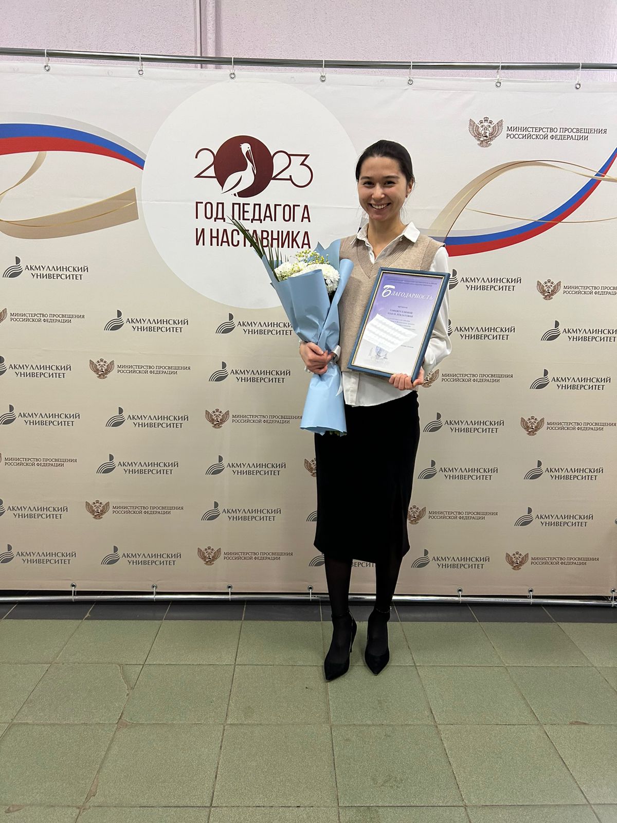 25 декабря на итоговом ученом совете БГПУ им. М.Акмуллы студентка 4 курса Института педагогики Наиля Гафиятуллина из Казахстана была награждена благодарностью из рук ректора Салавата Сагитова за выдающиеся достижения на региональном и федеральном уровнях, а также достойное представление Акмуллинского университета в рамках Года педагога и наставника.