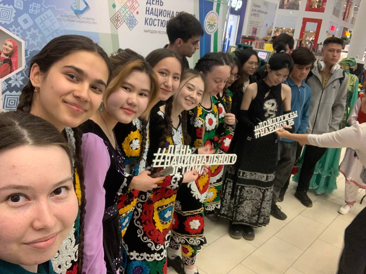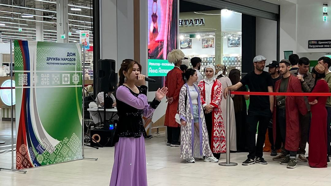 В честь праздника Министерство культуры и Дом дружбы народов Башкортостана организовали народное гуляние в одном из крупных торговых центров Уфы. Здесь собрались около 100 участников, которые изучают и бережно хранят культурное наследие своих предков от национального костюма до музыкального инструмента, песни или танца. Каждый посетитель этого уникального события получил возможность познакомиться с более чем 20 культурами  народов России и представителей ближнего и дальнего зарубежья, а также примерить на себя элемент любого национального костюма, которые были представлены на выставке для красочного памятного фото.