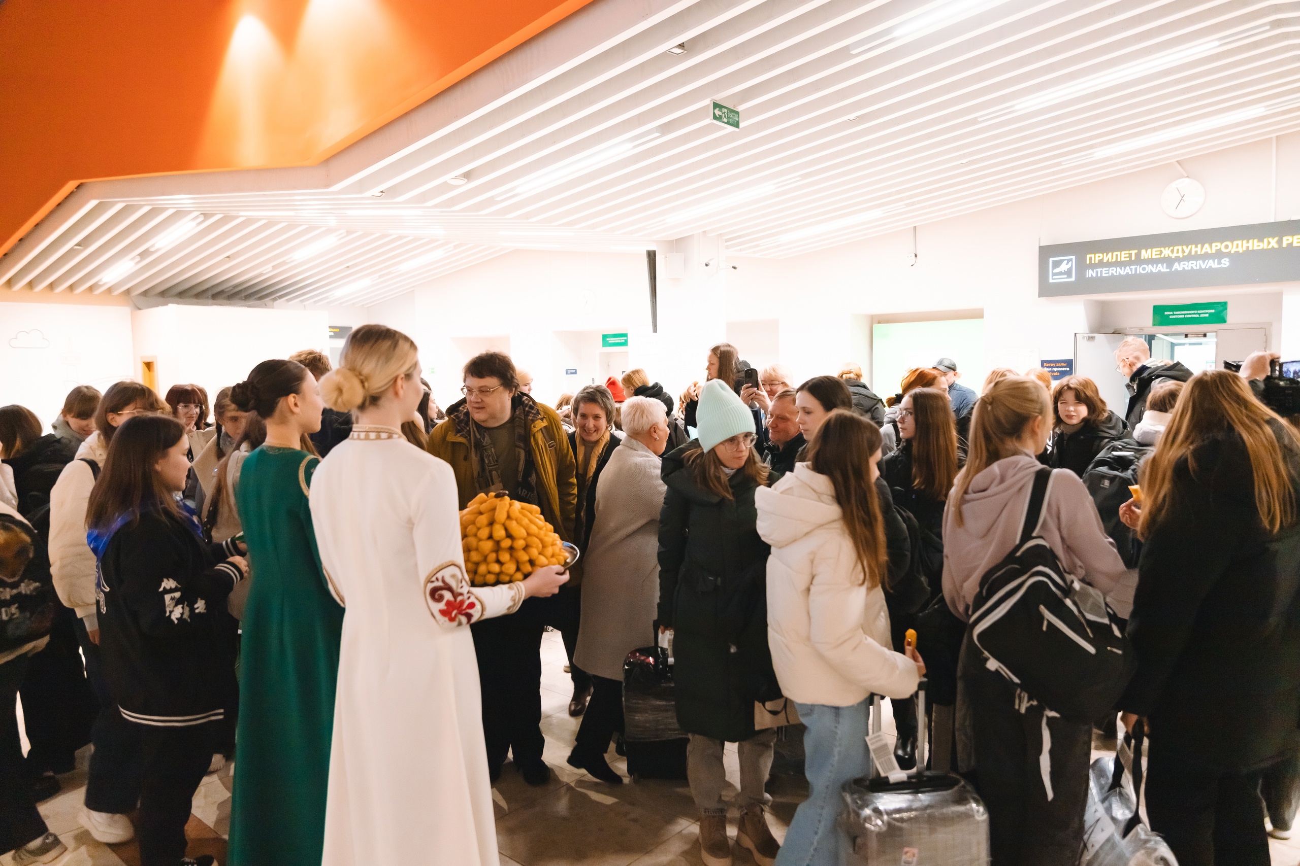 В международном аэропорту «Уфа» имени М.Карима делегацию из Беларуси встречали представители Акмуллинского университета. По традиции гостям преподнесли чак-чак. Яркие впечатления оставила музыка, исполненная на курае.