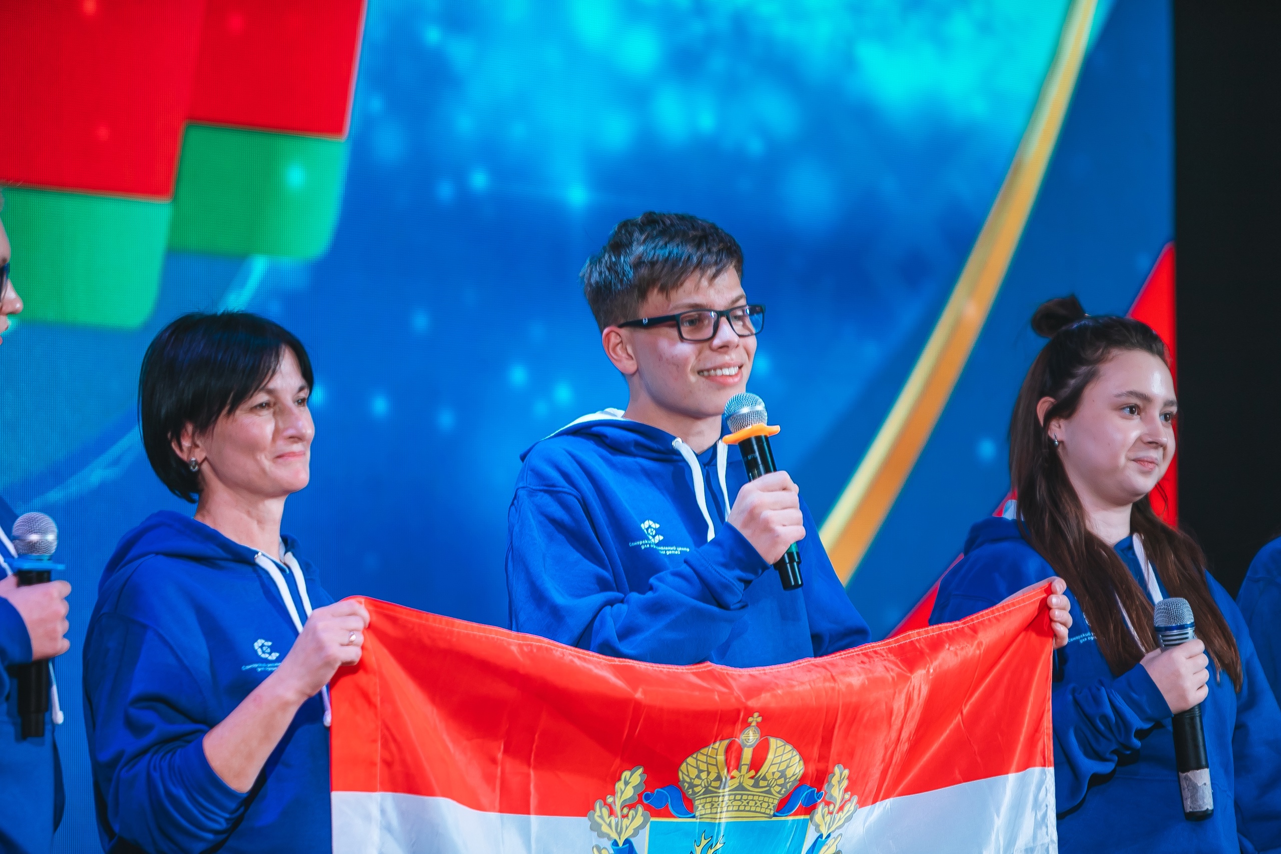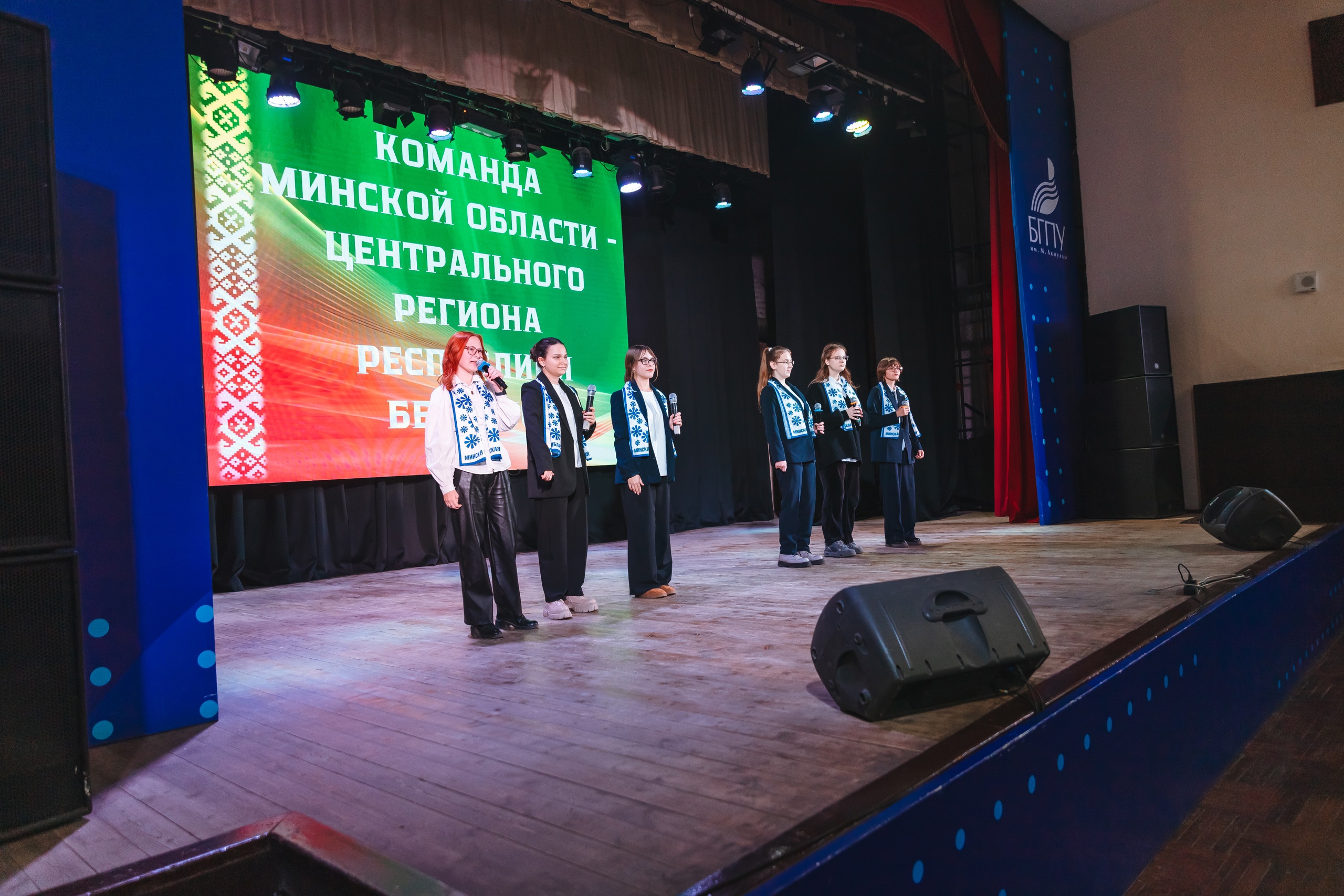 Для «Вечера дружбы» каждая команда подготовила свою визитку, где проявила фантазию и творческие способности. Ребята рассказывали о своих командах, городах и поселках, регионах и странах, их истории, символах и традициях. Школьники танцевали, пели и читали стихи на русском и белорусском языках, многие выступали в национальных костюмах и с флагами регионов.
