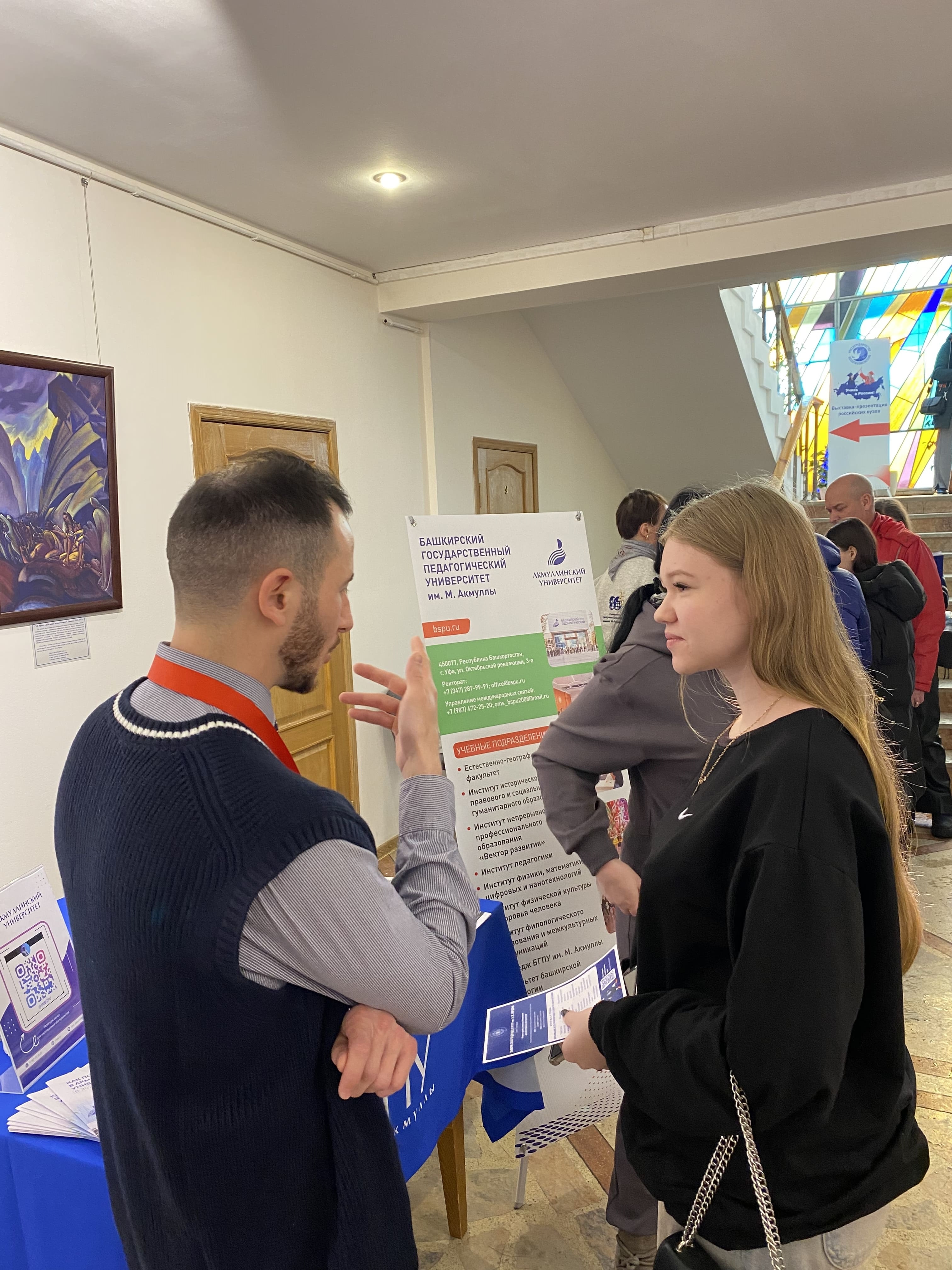 Акмуллинский университет на выставке представил начальник отдела международного сотрудничества Тимур Фахретдинов. Он подробно рассказал о вариантах поступления как по квотной программе, так и в рамках общего приема. Гости выставки узнали о возможностях поступления в магистратуру и преимуществах Акмуллинской олимпиады для магистров.