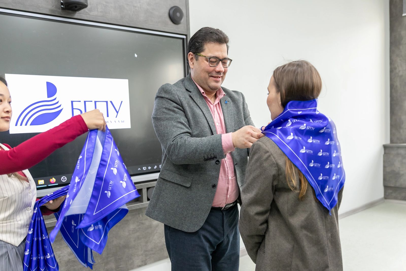 Радик Юлбаев, проректор по молодежной политике и международным связям БГПУ им. М. Акмуллы, рассказал студентам, что у каждого из них будет свой наставник из работающих в Киргизии российских учителей. Они помогут с методиками преподавания, расскажут об особенностях программ. Также Радик Зинатович поблагодарил и.о. руководителя Центра русского языка Центра международного сотрудничества Министерства просвещения РФ Ирину Пономареву за содействие и участие в решении вопросов.