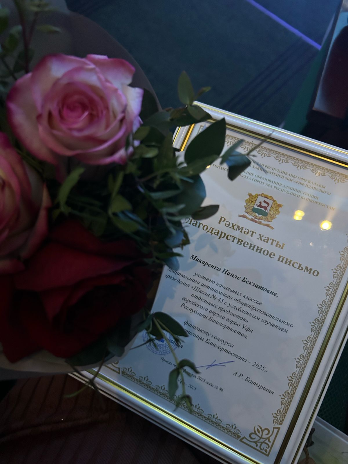 Магистрант Института педагогики из Казахстана Наиля Макаренко, работающая учителем начальных классов МАОУ "Школа № 45"  стала финалисткой конкурса «Учитель года столицы Башкортостана - 2025». Все участники прошли три этапа, в рамках которых их ждали испытания: «Урок», «Педагогическое интервью», «Мастер-класс», «Брифинг», «Блицтурнир». В ходе конкурса Наиля Бекзатовна получила возможность продемонстрировать новые технологии и методики, достижения, рассказать о волнующих вопросах, найти единомышленников и вдохновение для новых свершений.