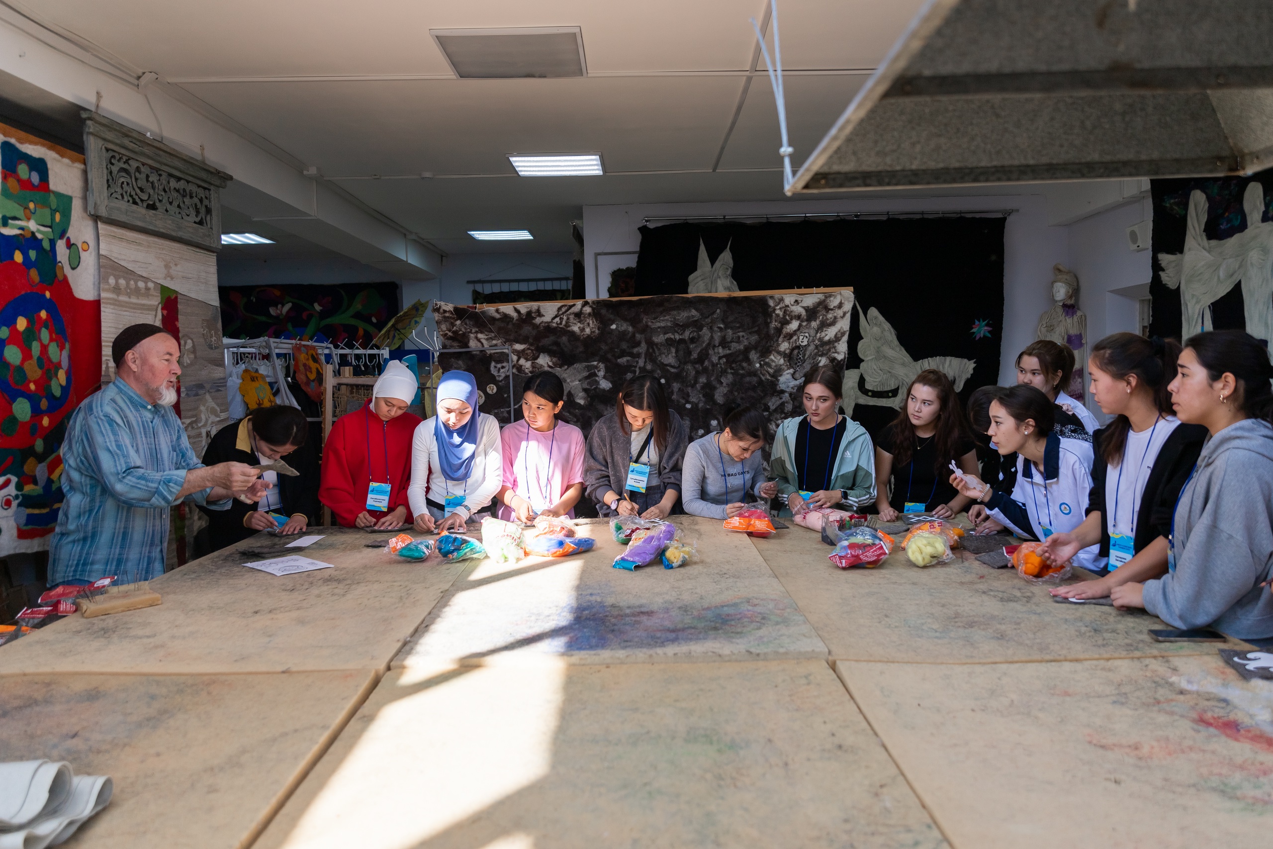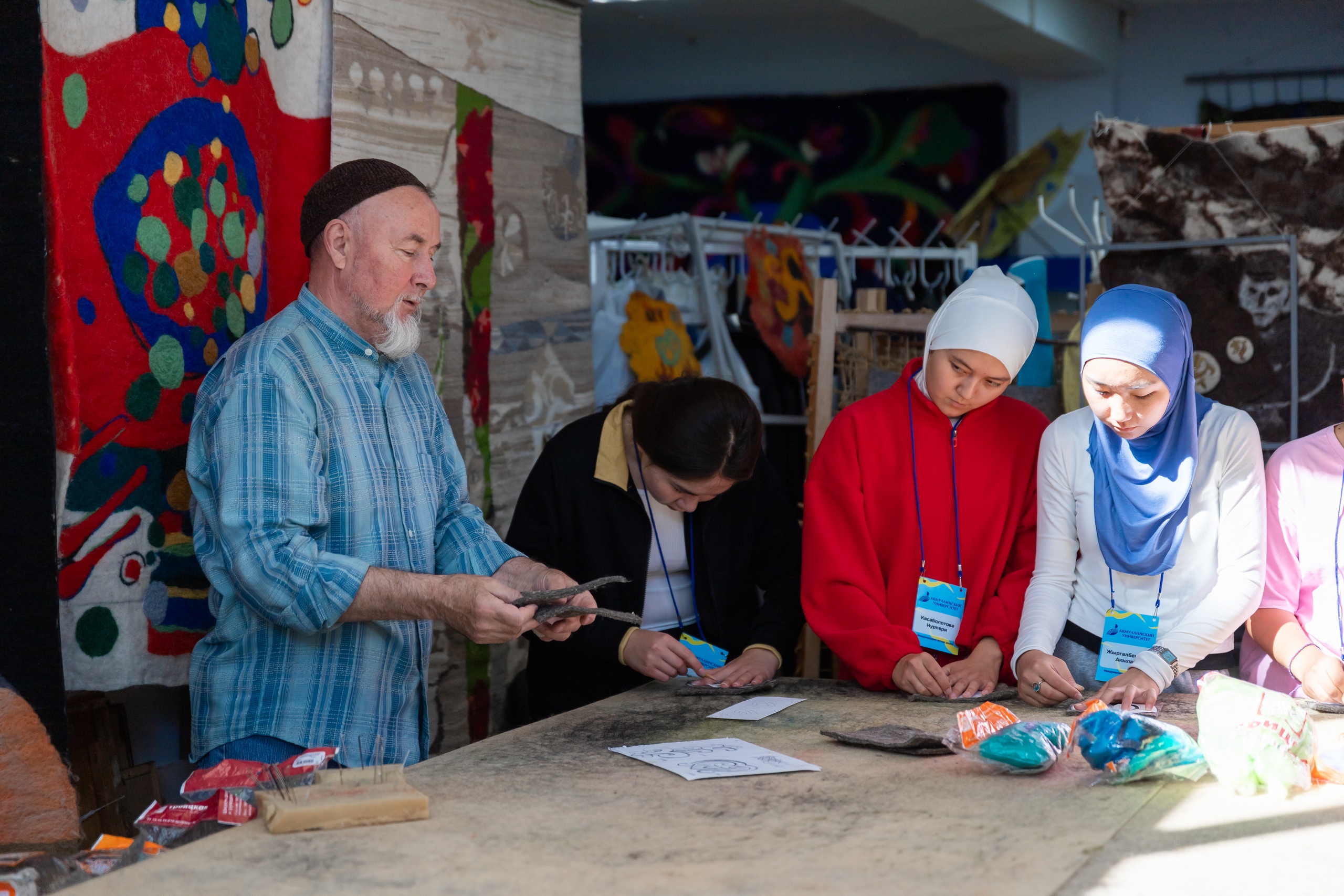 Также ребята посетили мастер-класс в Центре художественного войлока БГПУ им. М. Акмуллы. Его руководитель Талгат Масалимов познакомил детей с декоративными панно, костюмами и объемными арт-объектами, представленными в Центре. Участники летней школы смогли сами сделать небольшую поделку из войлока. Все изделия, созданные в рамках мастер-класса, ребята забрали с собой на память.