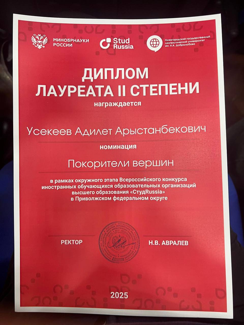 С 5 по 7 ноября в Нижнем Новгороде, на базе Нижегородского государственного лингвистического университета им. Н.А. Добролюбова проходил окружной этап Всероссийского конкурса иностранных обучающихся «СтудRussia». Конкурс проводится для поддержки иностранных обучающихся России, имеющих особые достижения в области образования и науки, молодежной политики, студенческого лидерства, общественной деятельности, добровольчества, творчества и спорта. Он дает ребятам возможность познакомиться с активистами со всей страны, заявить о себе и получить шанс выиграть отличные призы.