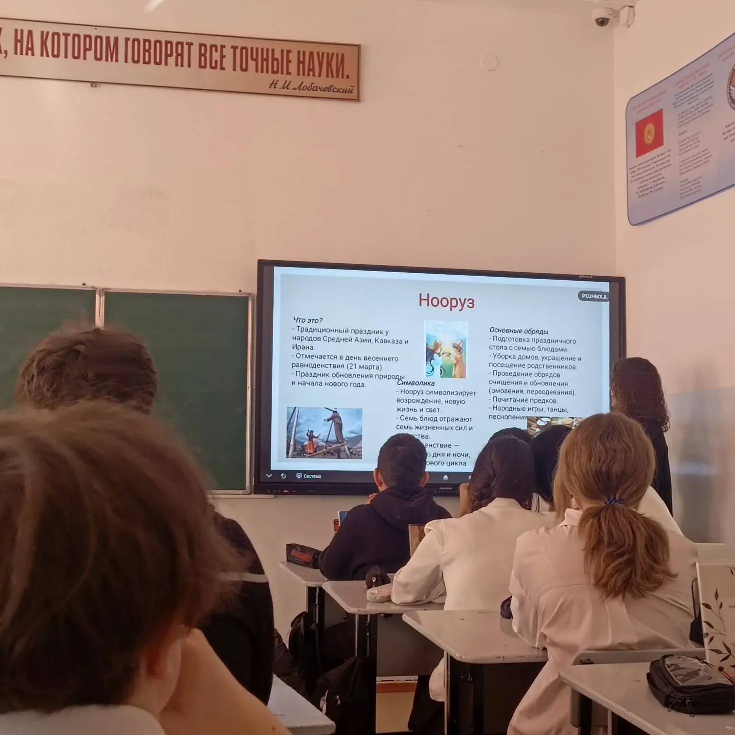 Валерия Фомина в школе №33 им. К. Токаева г. Бишкек провела с учениками 8А класса мероприятие «Масленица и Нооруз: праздники весны», который позволил ученикам лучше узнать традиции народов.