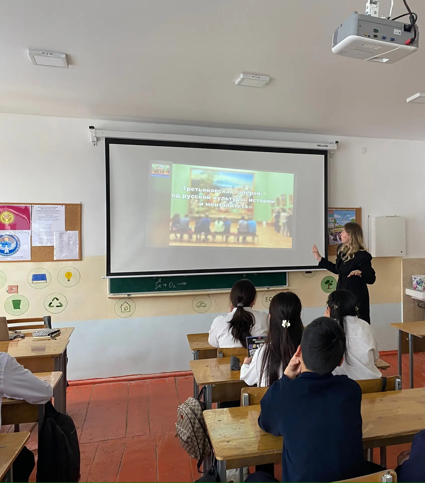 В преддверии Международного дня родного языка Азалия Алимгафарова провела внеурочные мероприятия с учениками 9Г класса школы №3 им. М. В. Ломоносова г. Ош.