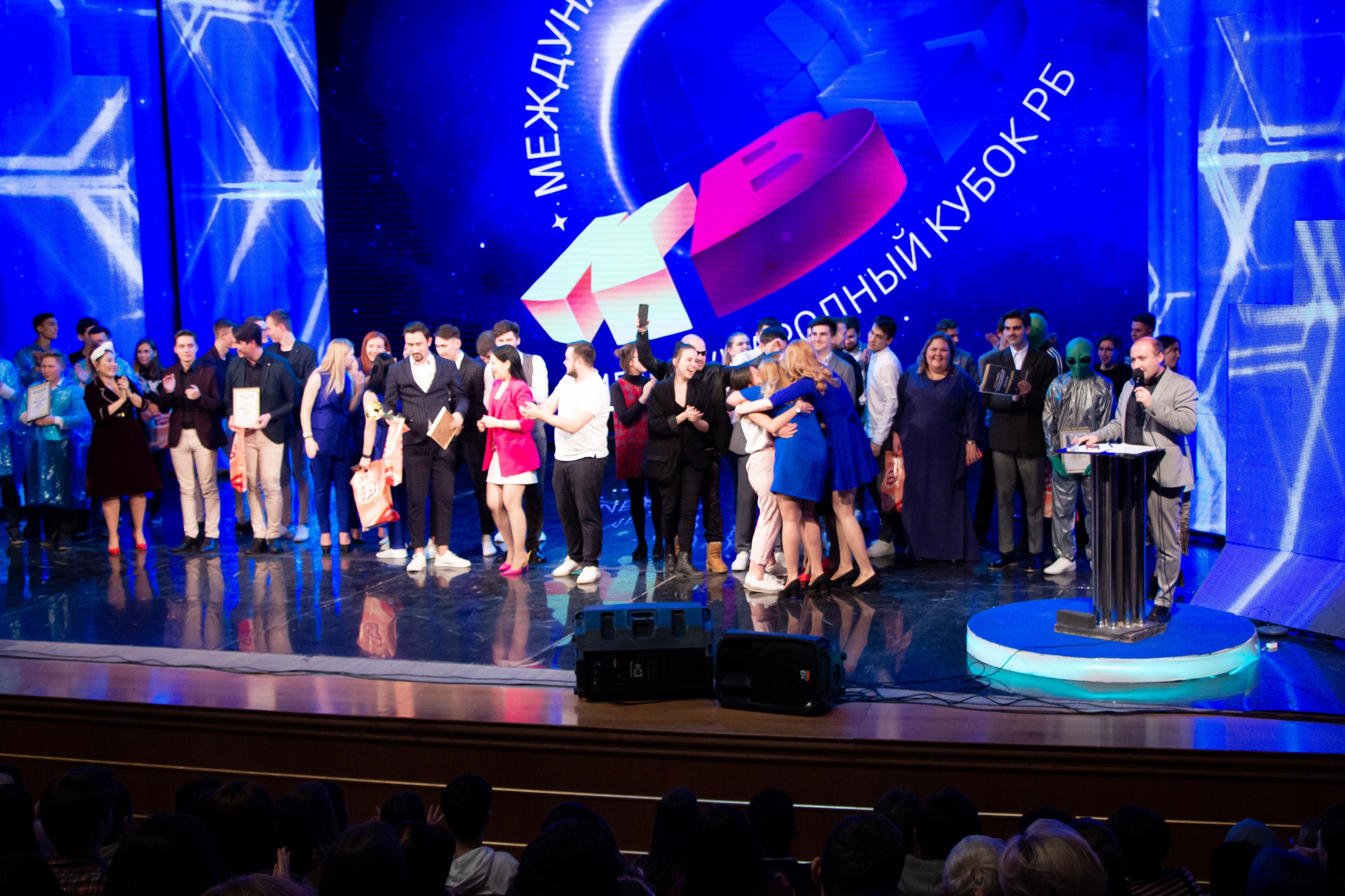 За кубок боролись сильнейшие команды КВН РБ. Сборная команда нашего университета как чемпион Высшей лиги КВН РБ тоже стала участником игры.