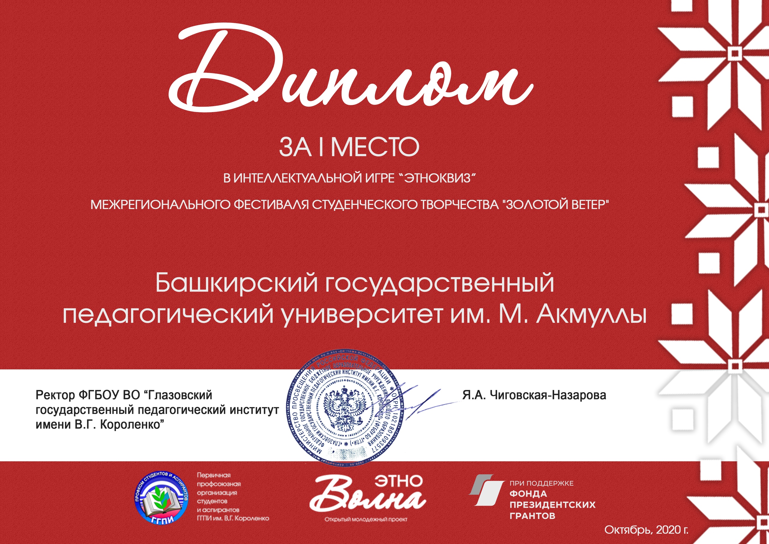 29-30 октября 2020 года в Глазовском государственном педагогическом институте имени В.Г. Короленко (г. Глазов, Удмуртская Республика) состоялся Межрегиональный фестиваль фольклорного творчества «Зарни тöл» («Золотой ветер»).